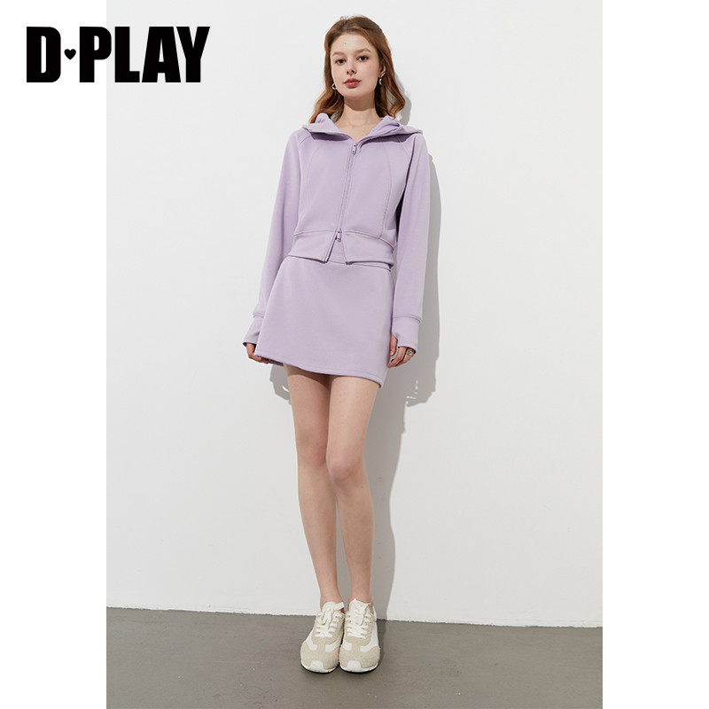 DPLAY2025年春季新款紫色运动套装女休闲lulu卫衣上衣裙子短裙