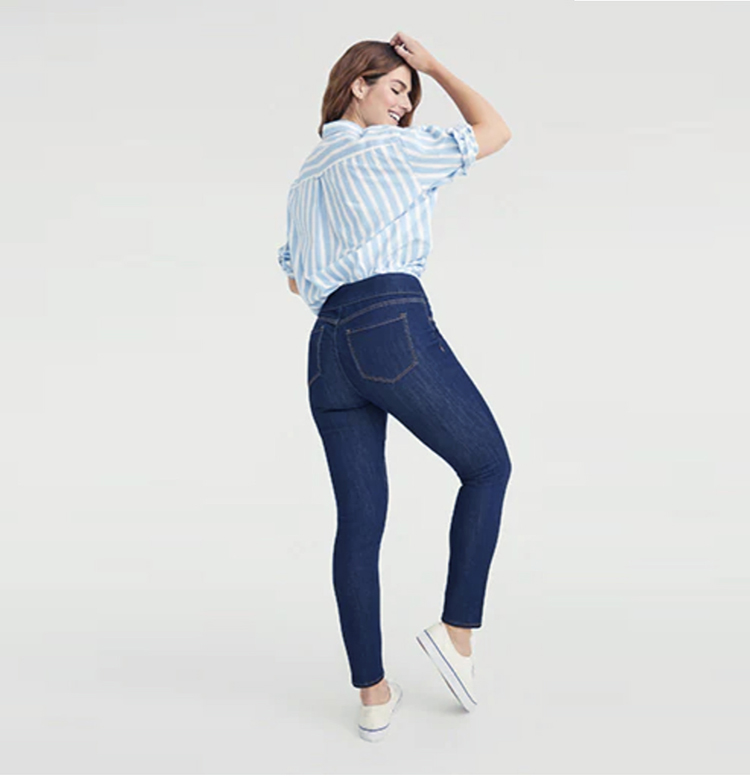 两件九折外贸美单高弹力高腰松紧腰蓝色水洗铅笔修身小脚牛仔裤