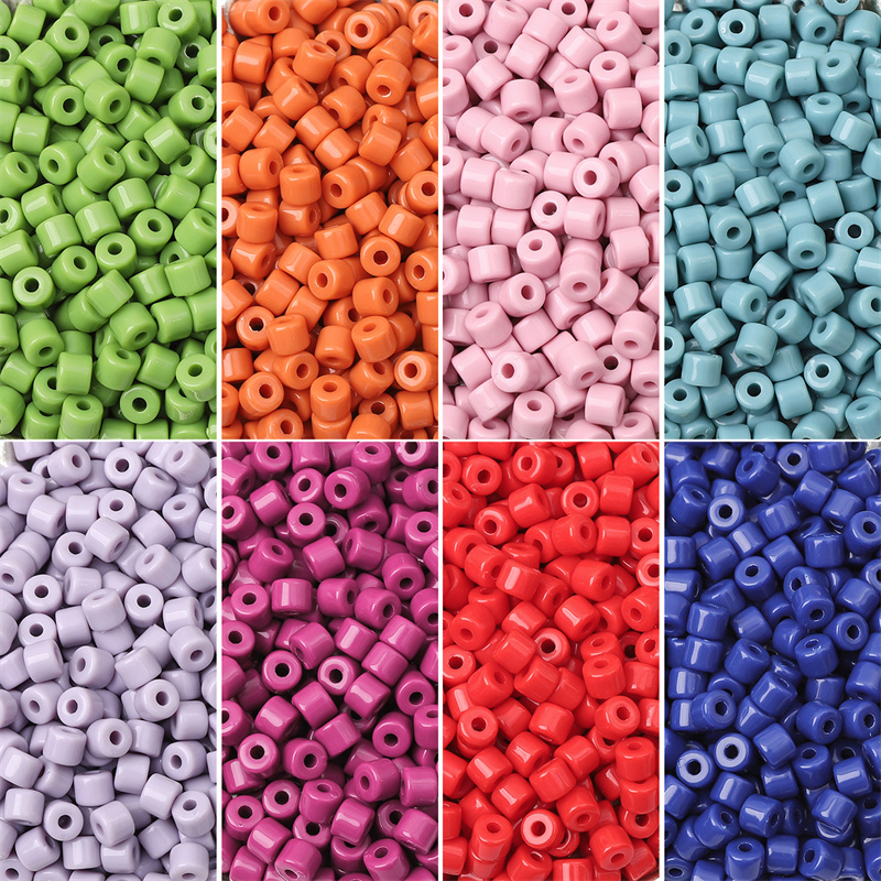 6mm亚克力实色小圆柱奶油珠散珠手工DIY串珠手链项链饰品材料配件