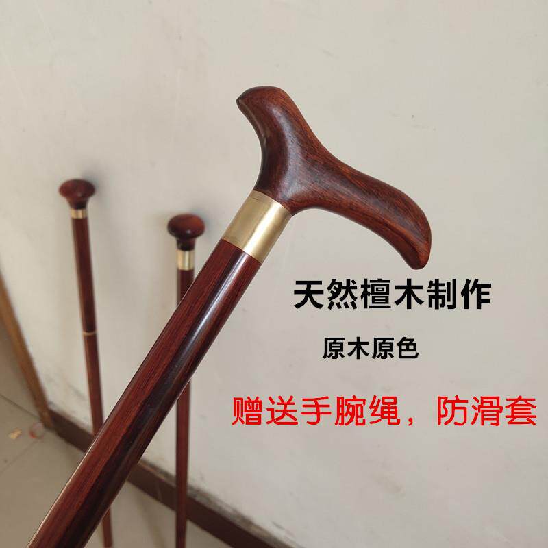 小叶紫檀红木手杖老人防滑拐杖实木圆头文明棍檀木三节拐棍登山杖