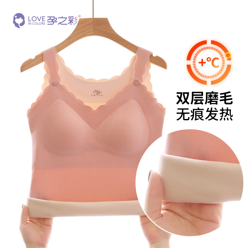 孕之彩孕产通用哺乳背心秋冬磨毛保暖吊带产后保暖内衣喂奶文胸