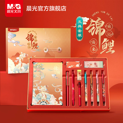 晨光文具锦鲤学生文具礼盒11件套装考试中考二建大礼包按动中性笔芯0.5黑水笔涂卡铅笔一二年级女生学习用品