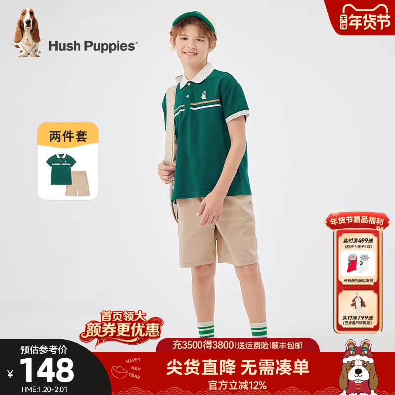 暇步士童装男童套装夏季新款中大童休闲透气短袖儿童帅气宽松短裤