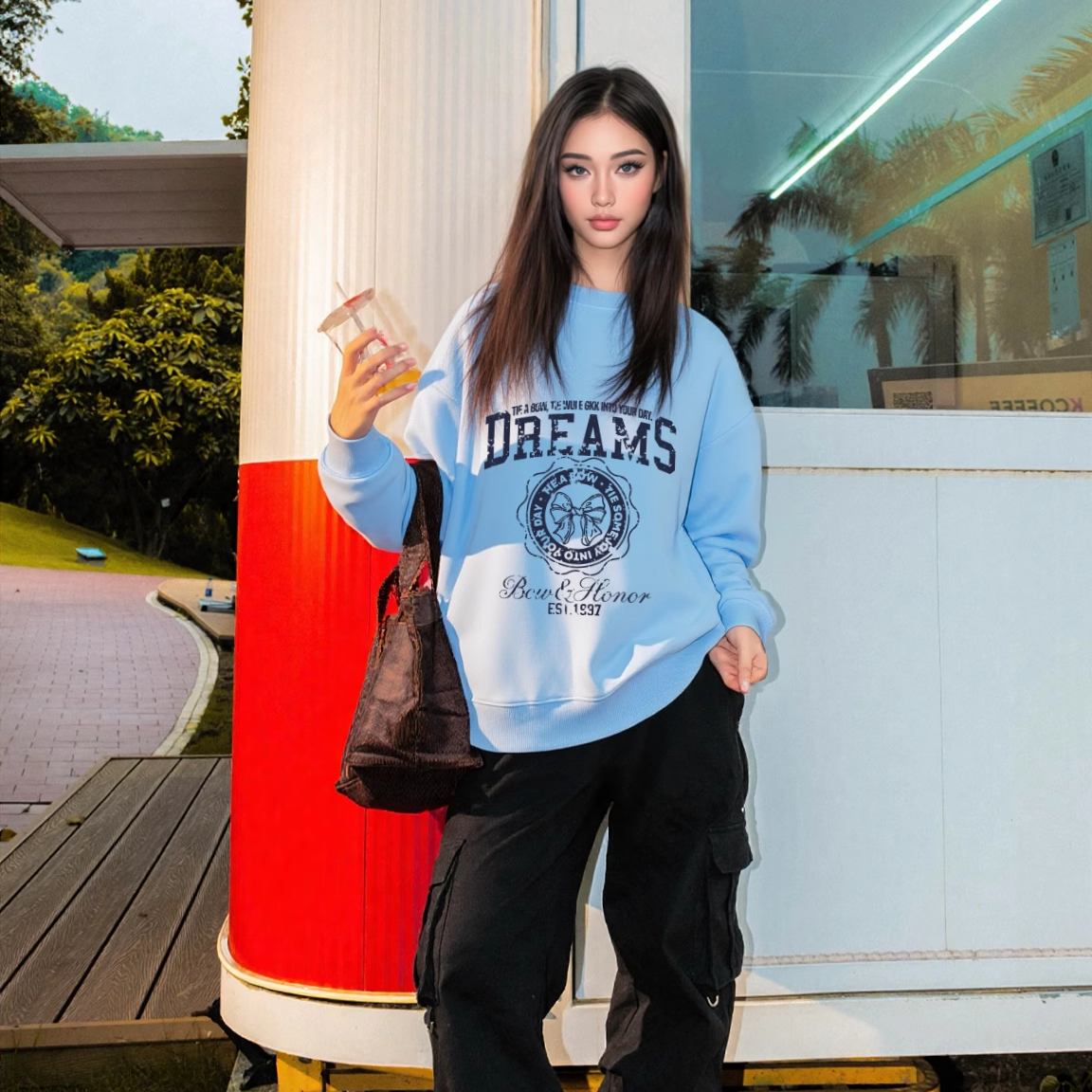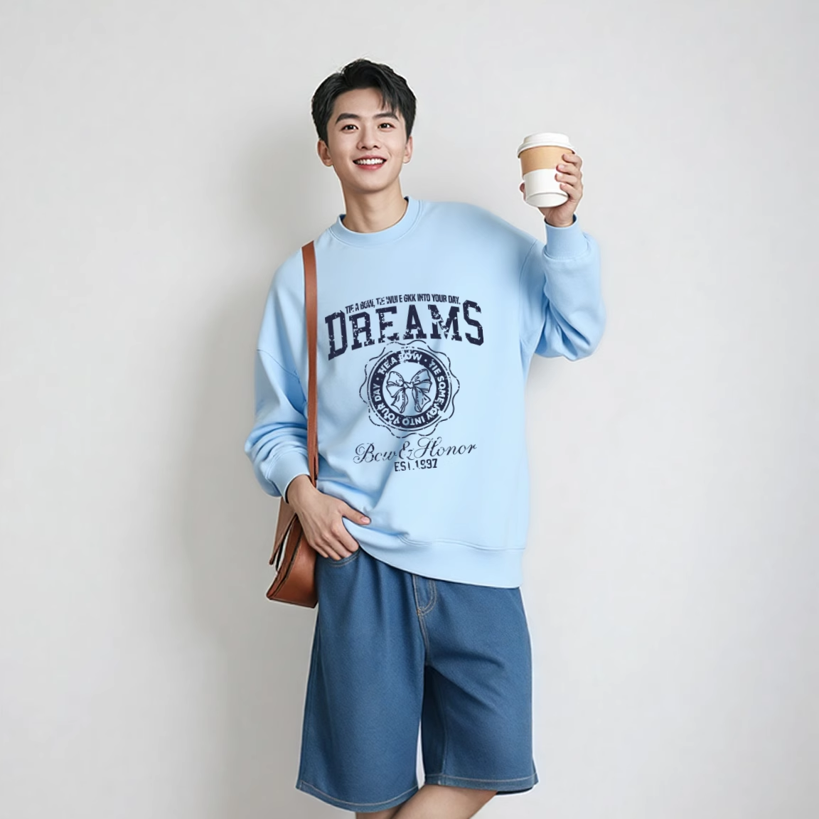 【明星同款】立体裁剪美式圆领卫衣男女2025春秋新款潮牌重磅宽松
