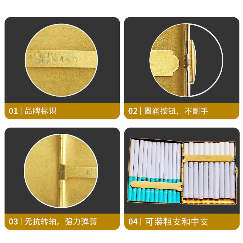 KUBO/酷宝新款 财神黄铜中支粗支烟盒便携创意男复古高档 烟夹盒