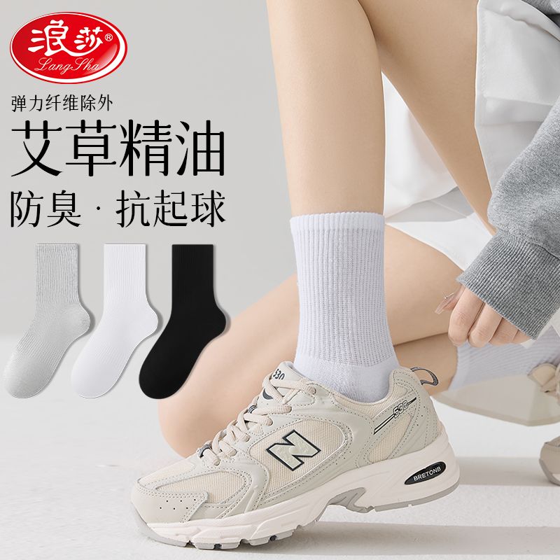 浪莎袜子男女夏季薄款纯棉艾草精油防臭抗菌透气夏天中筒运动男袜