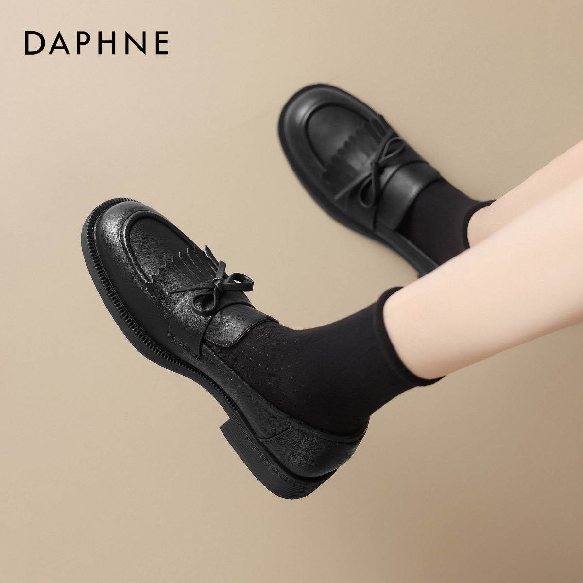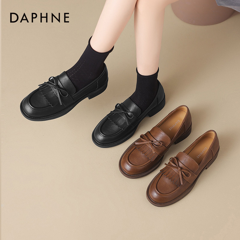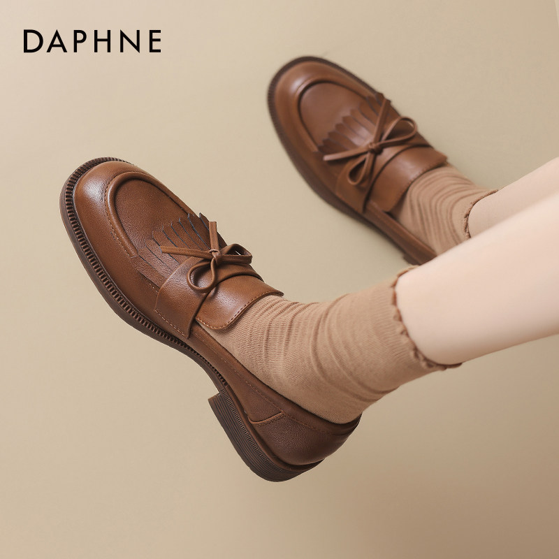 达芙妮棕色乐福鞋女2025新款平底单鞋英伦风小皮鞋一脚蹬软底女鞋