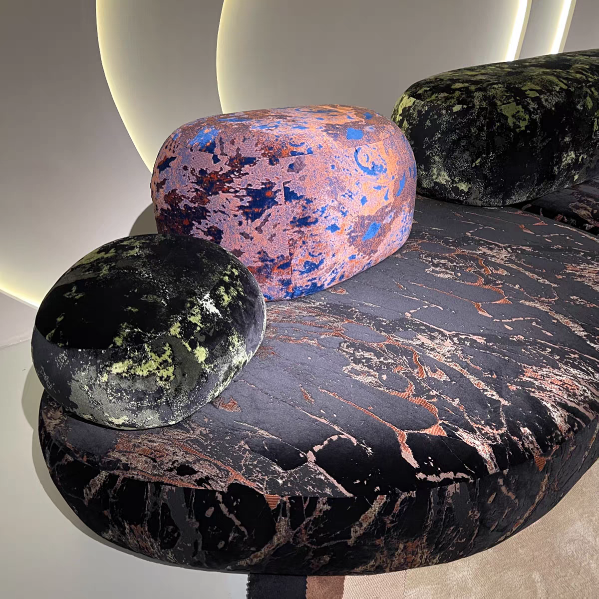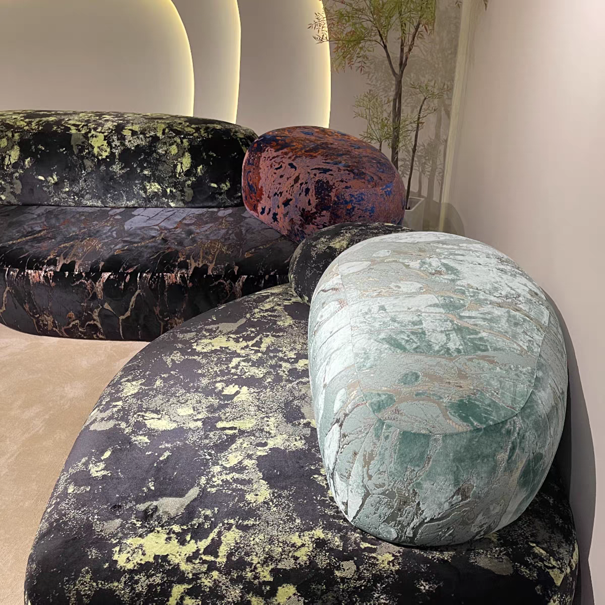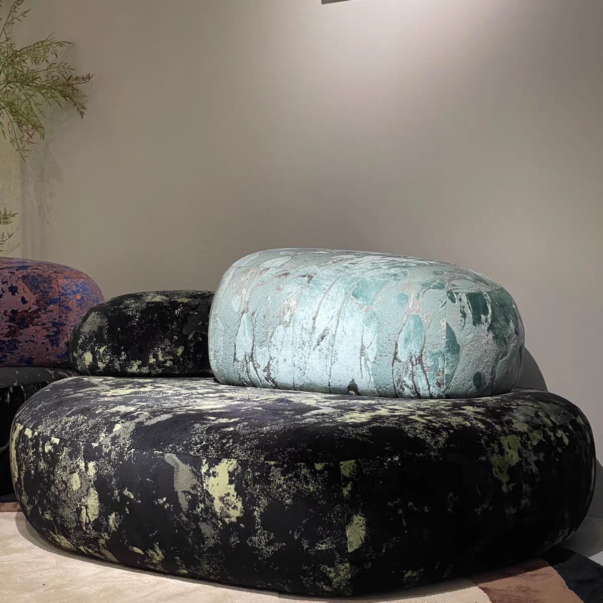 鹅卵石布艺沙发异形创意模块沙发设计师奶油风弧形小石头酒店岩石