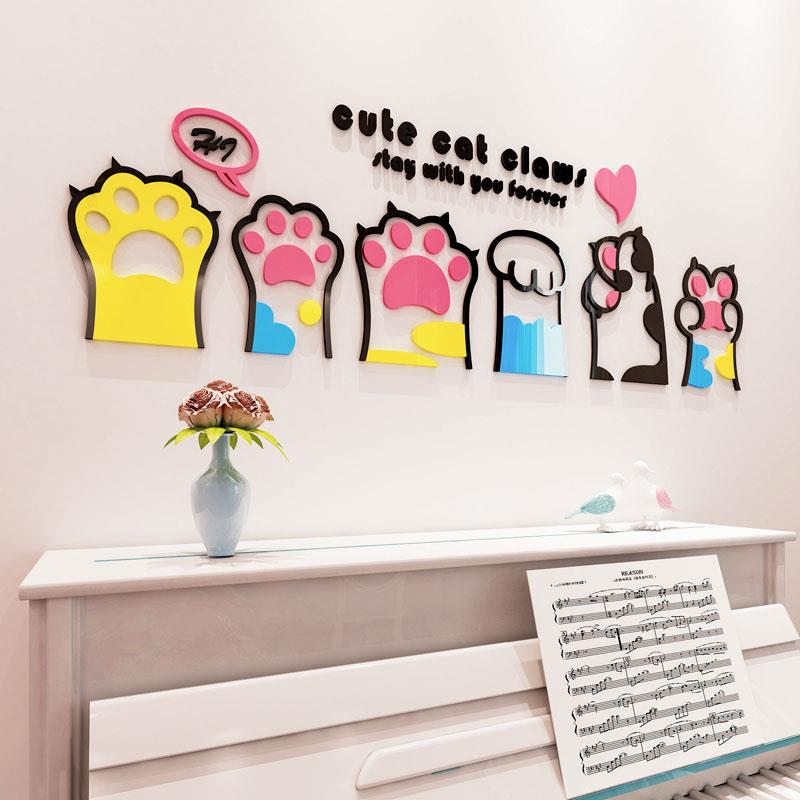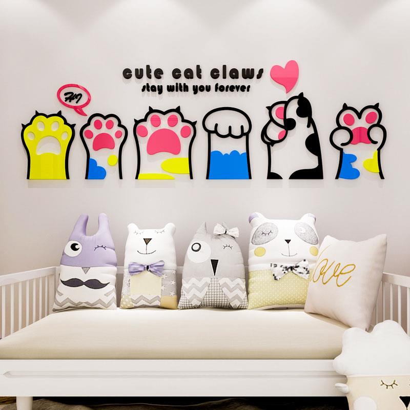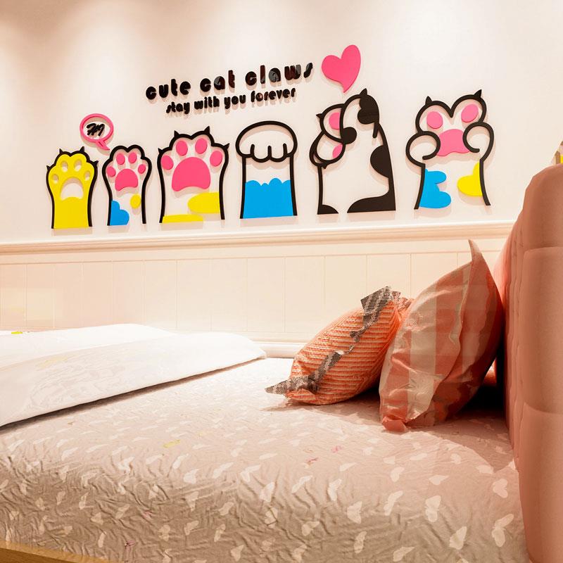 可爱猫爪3d立体墙贴电视沙发背景墙儿童房卧室床头装饰品店铺布置