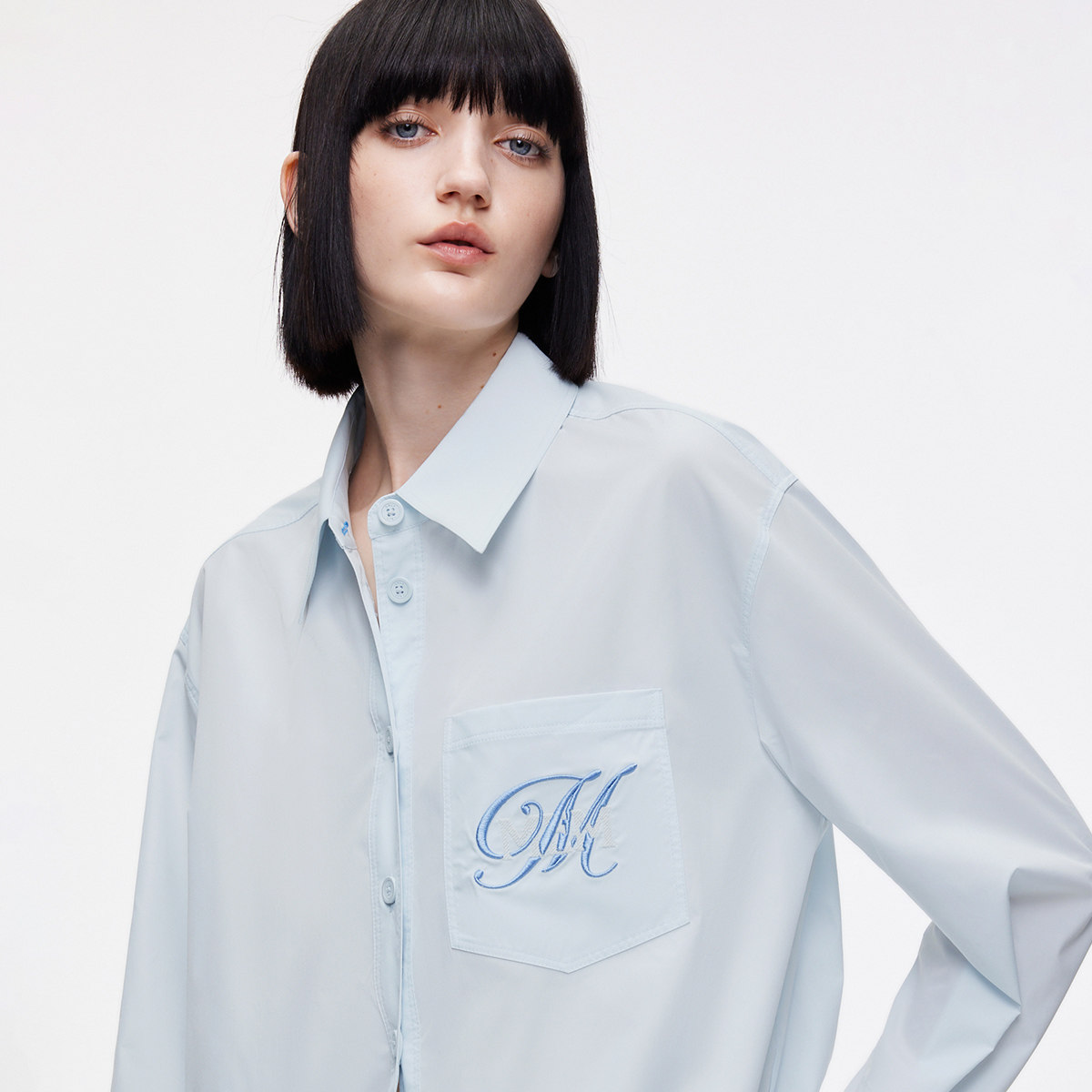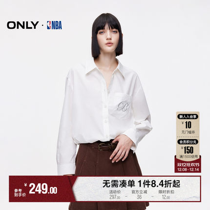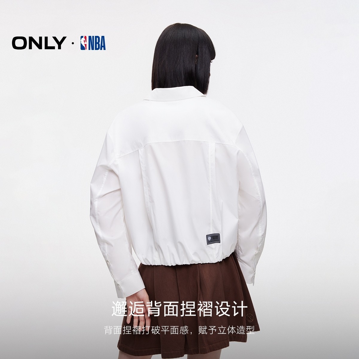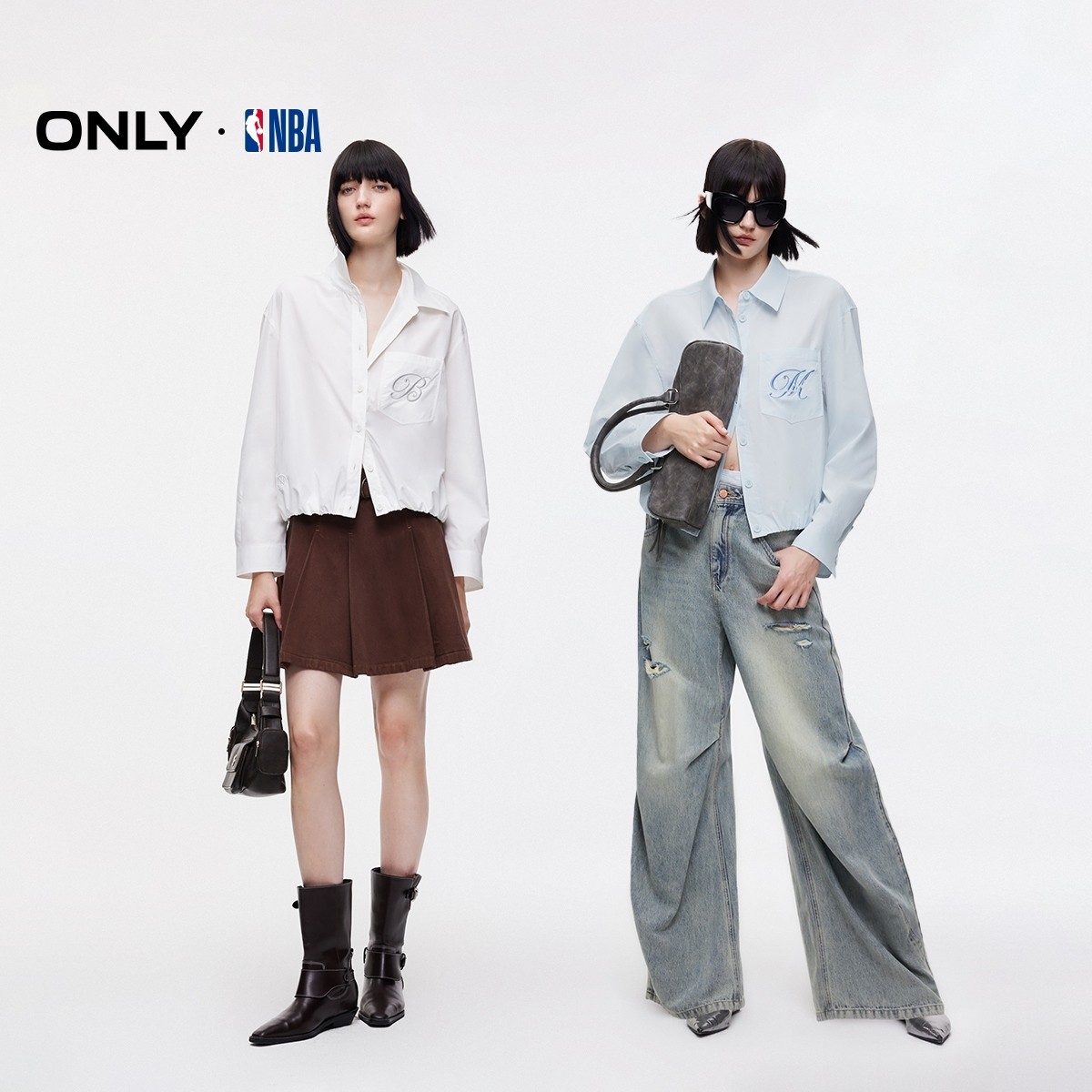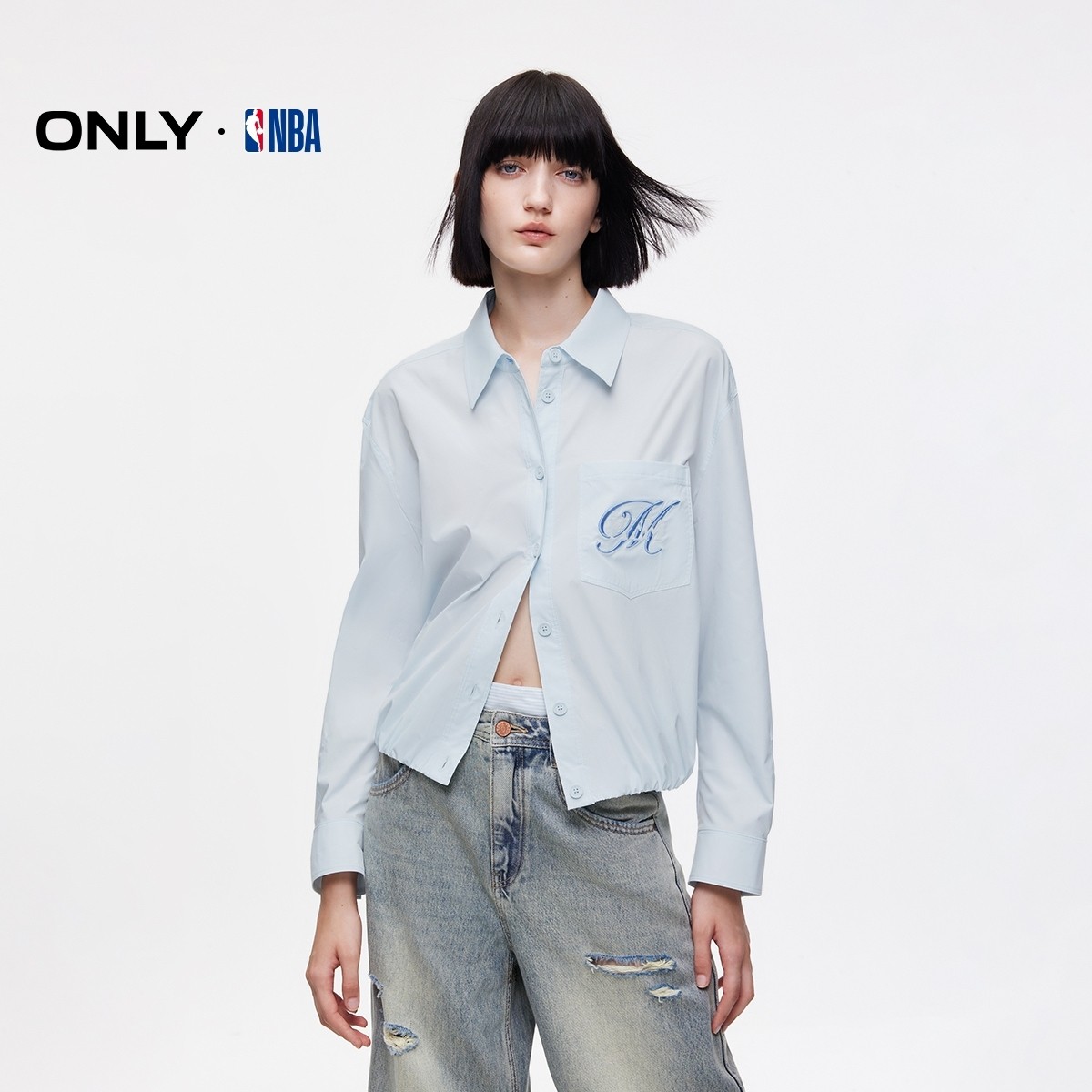 ONLY2025秋季新款NBA联名款口袋字母刺绣花苞下摆宽松长袖衬衫女