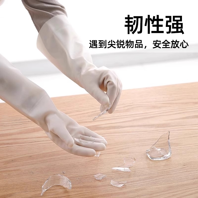 耐用丁腈洗碗手套加长带图案女防水加厚橡胶加绒植绒耐用洗衣服