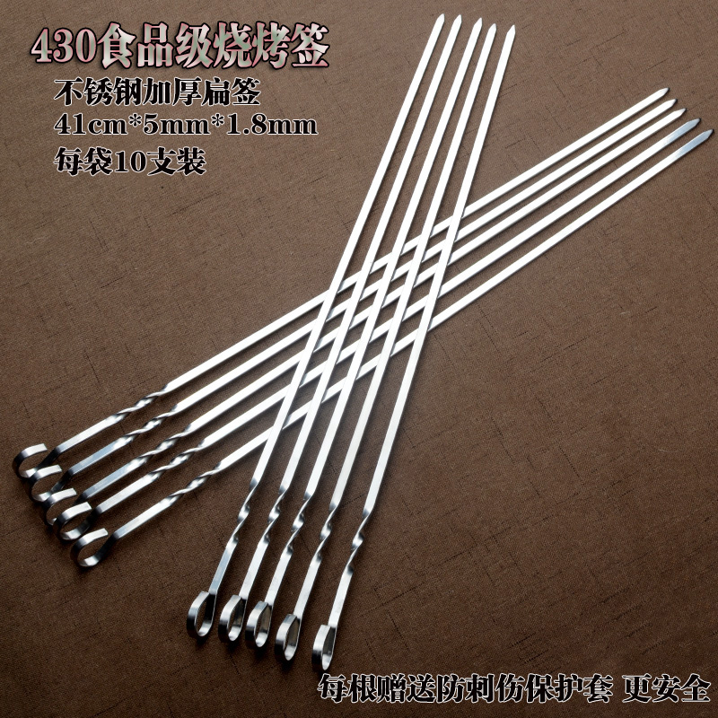 烧烤用具不锈钢扁签加厚刚签烧烤签子烤针羊肉串铁签烤肉烤串签子