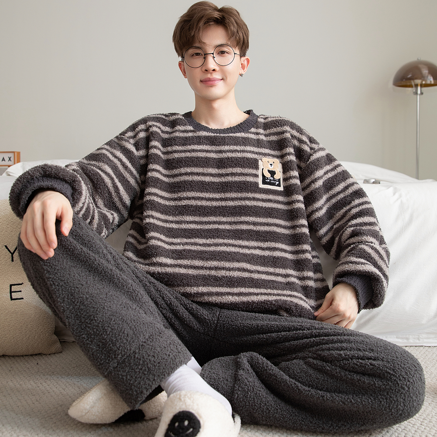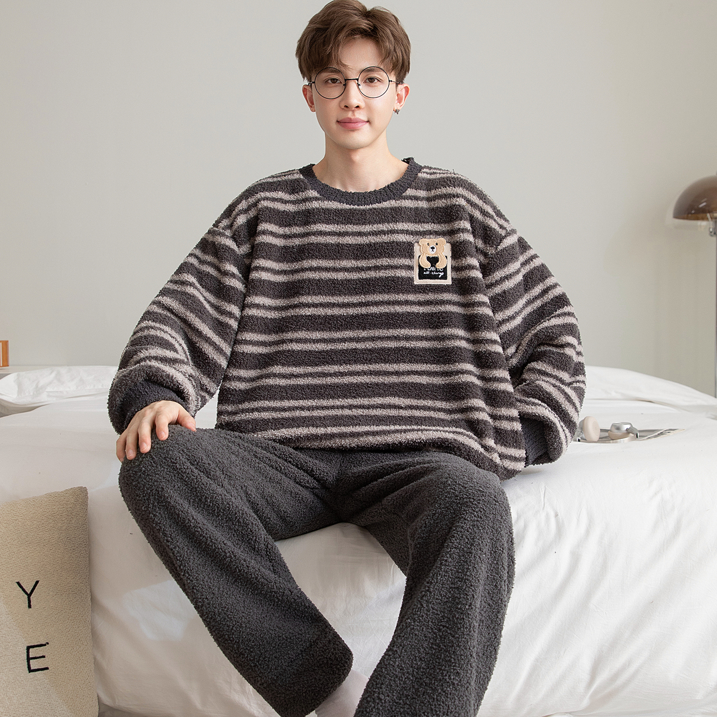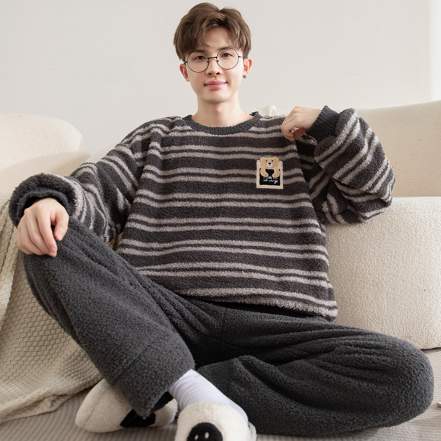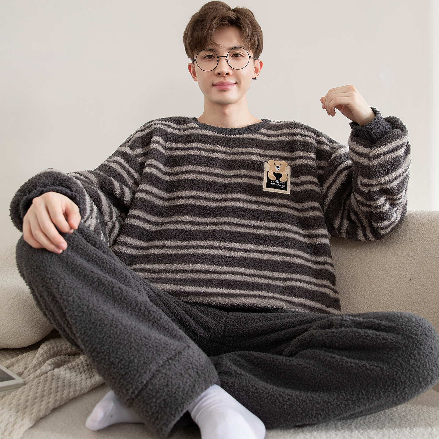 红豆睡衣男士秋冬季珊瑚绒加厚加绒男款青少年学生大童大码法兰绒