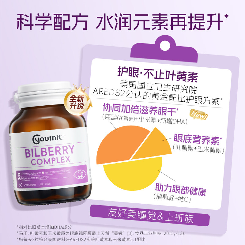 澳洲Youthit优思益蓝莓叶黄素护眼成人胶囊越橘DHA眼睛干进口2瓶