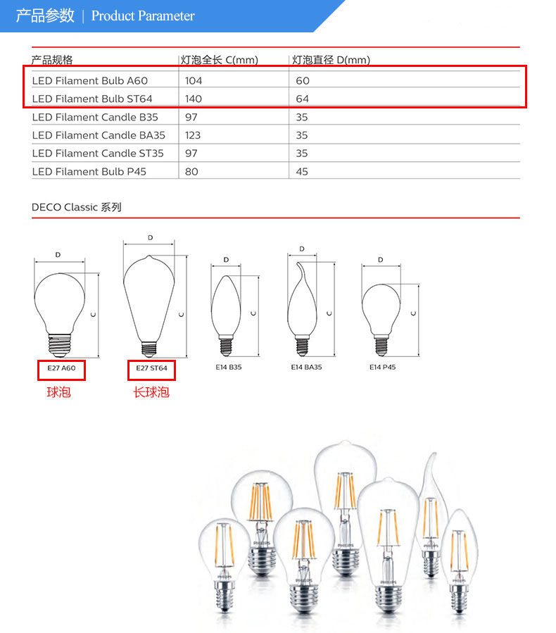 飞利浦led爱迪生灯泡e27e14小螺口复古2w4w6w高亮单灯丝创意光源