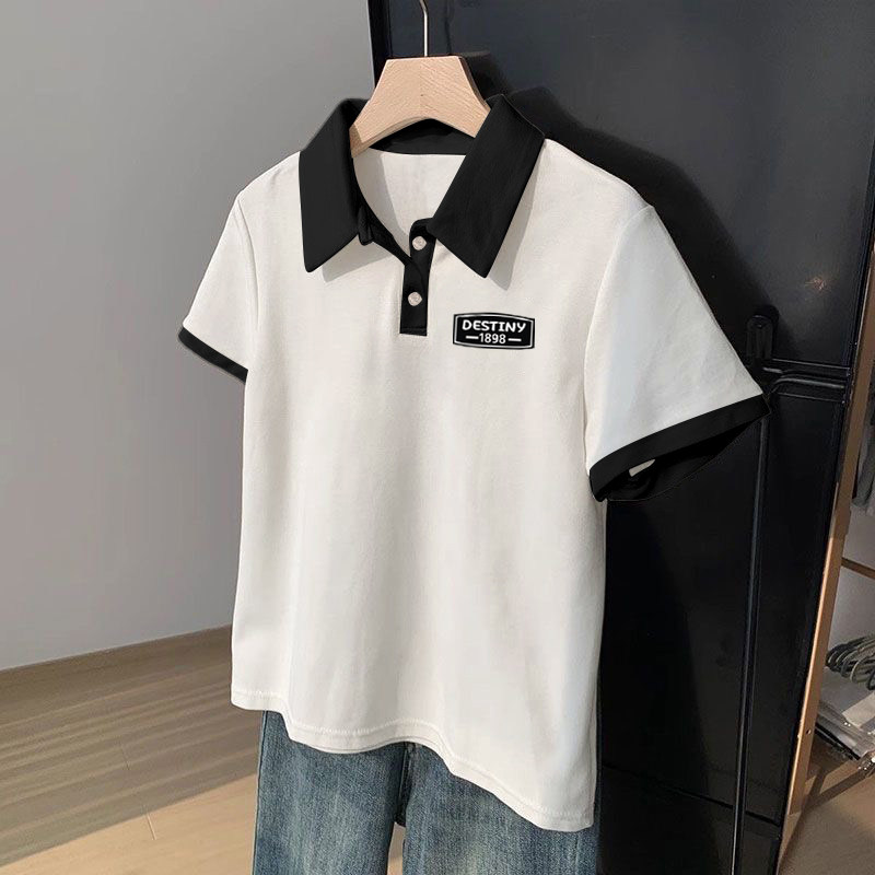 夏季新款纯棉polo衫男款短袖拼接撞色t恤男生潮韩版宽松翻领上衣