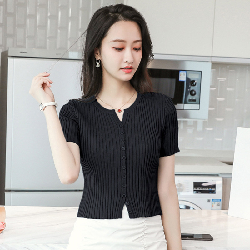 短袖夏季新款高腰小个子针织开衫