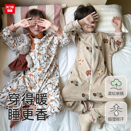 儿童纯棉连体睡衣春秋季宝宝连体衣婴幼儿长袖空调服男童女童睡袋