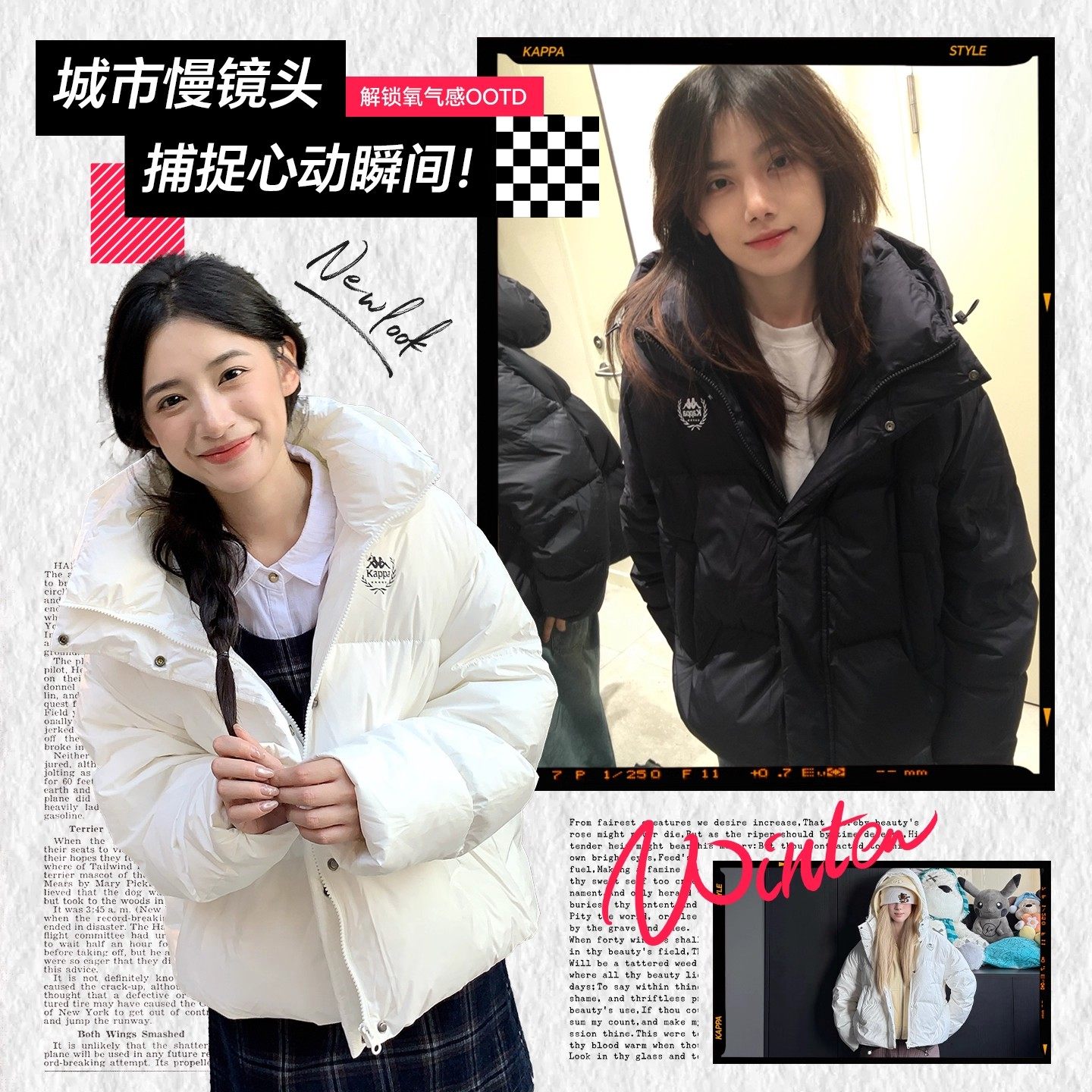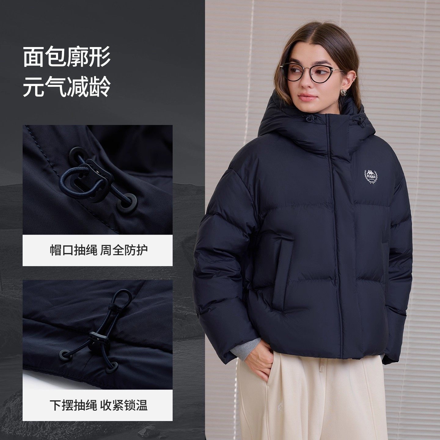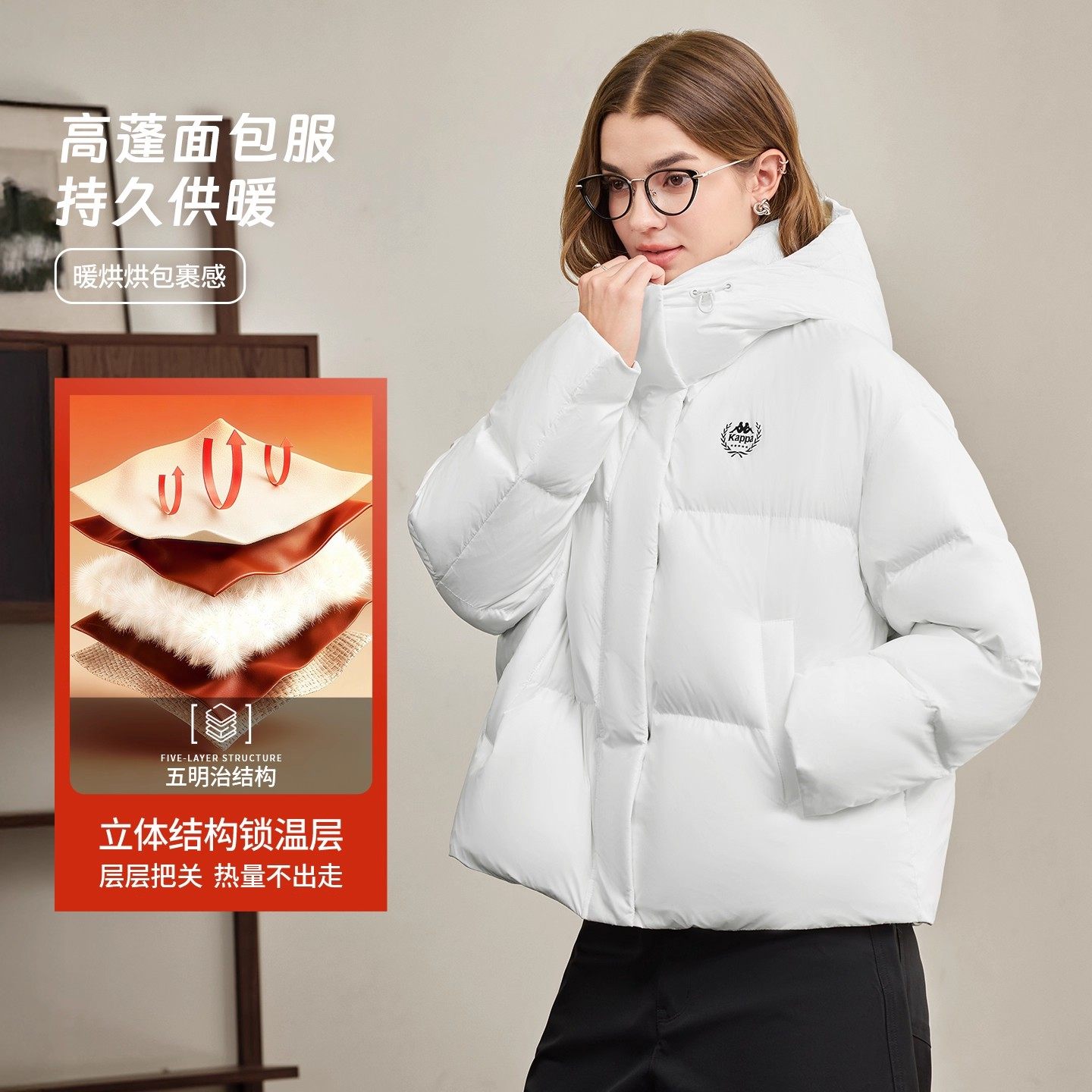 Kappa卡帕背靠背运动羽绒服女2026新款冬季经典简约连帽保暖外套