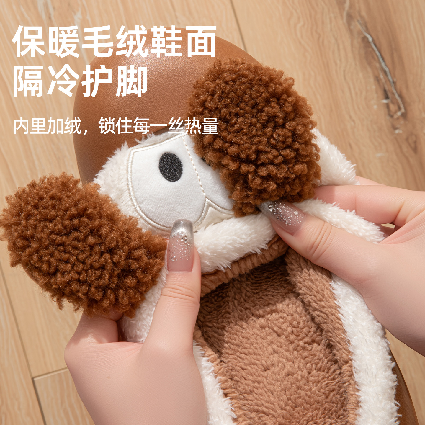 小狗棉拖鞋女2025新款秋冬季外穿防滑居家室内保暖可爱毛毛拖鞋女