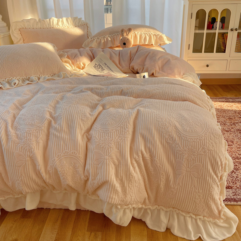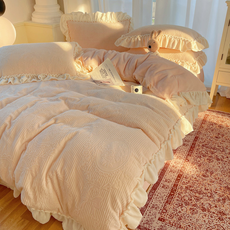雕花绒四件套浪漫粉秋冬公主风