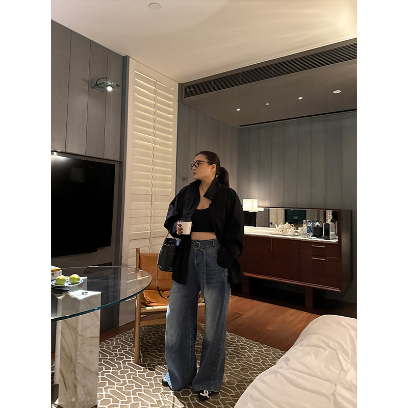 铅笔小鑫大码女装 洗水剪裁 酷辣拼接 大码牛仔裤