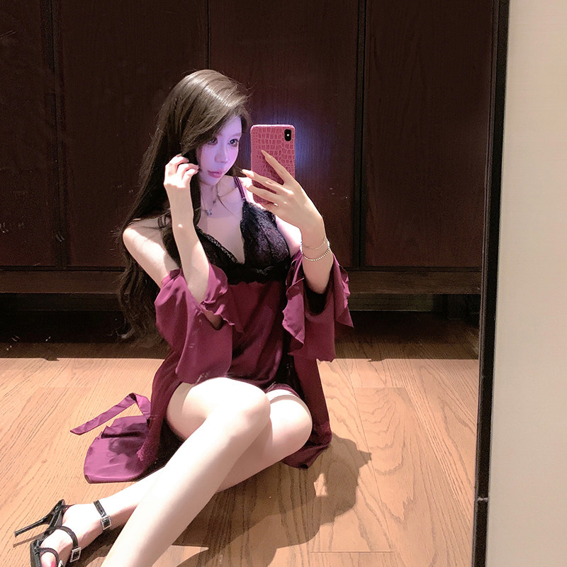 捞捞酱「微醺富婆紫」冰丝性感吊带睡裙纯欲风睡衣女2025新款睡袍