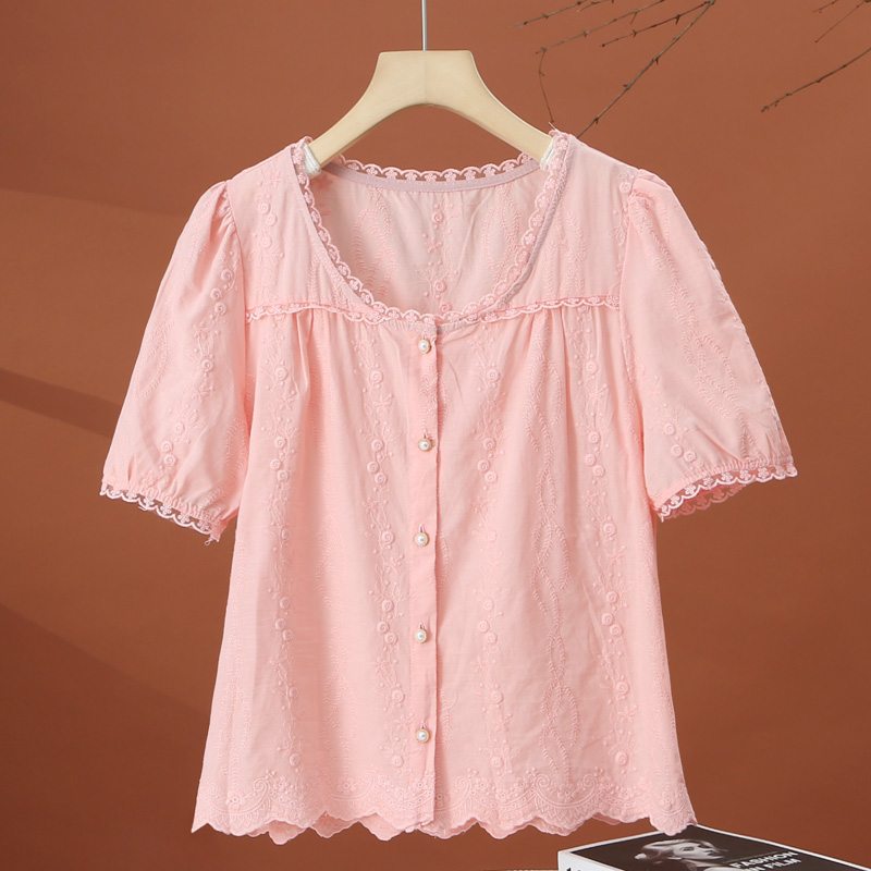 蕾丝短袖衬衫女夏季2025年新款洋气百搭小衫减龄衬衣时尚女士上衣