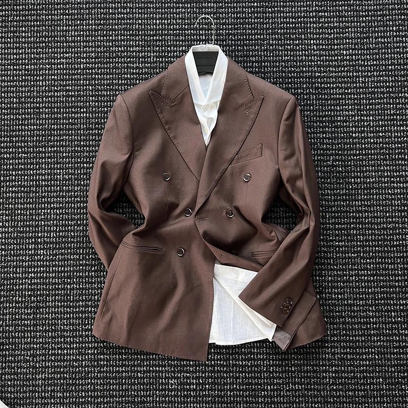意式那不勒斯双排扣西服套装男士时尚戗驳领双排扣商务正装礼服