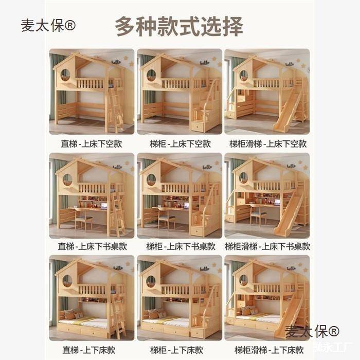 儿童上下床铺双层床男孩全实木高低子母床城堡滑梯女孩公主麦太保