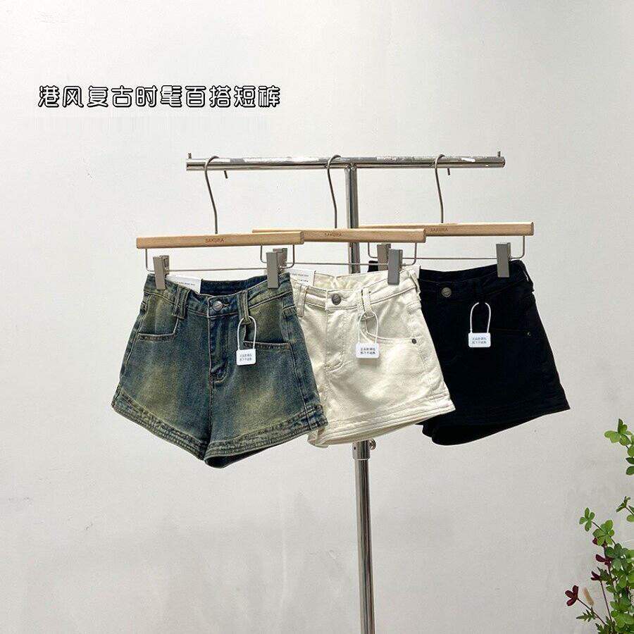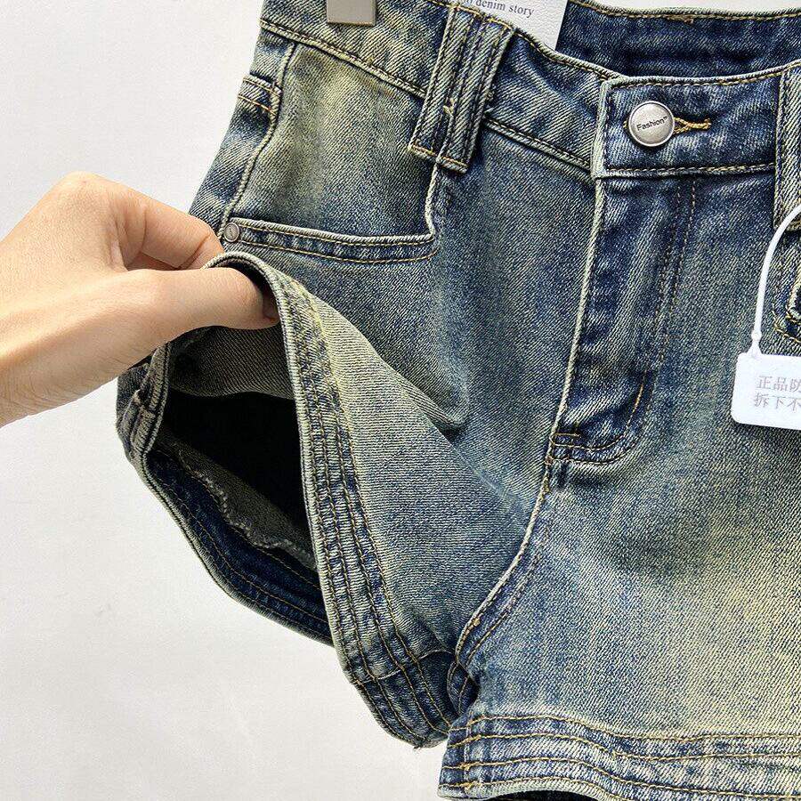 韩版复古风低腰牛仔短裤女春季2026新款百搭显瘦阔腿休闲裤辣妹风