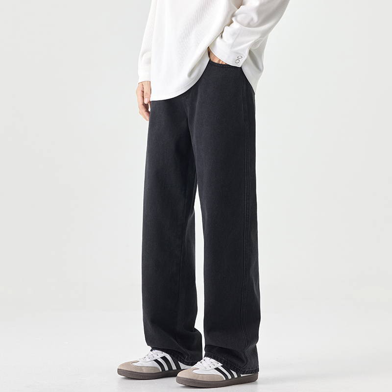 博世堡牛仔裤男秋季新款黑色宽松水洗休闲复古潮流时尚直筒长裤子