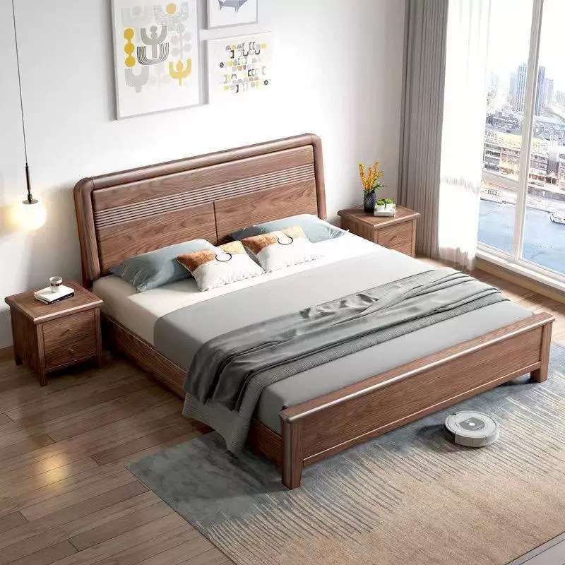 红橡木全实木床1米8主卧双人床 小户型气压高箱储物床1.5米单人床