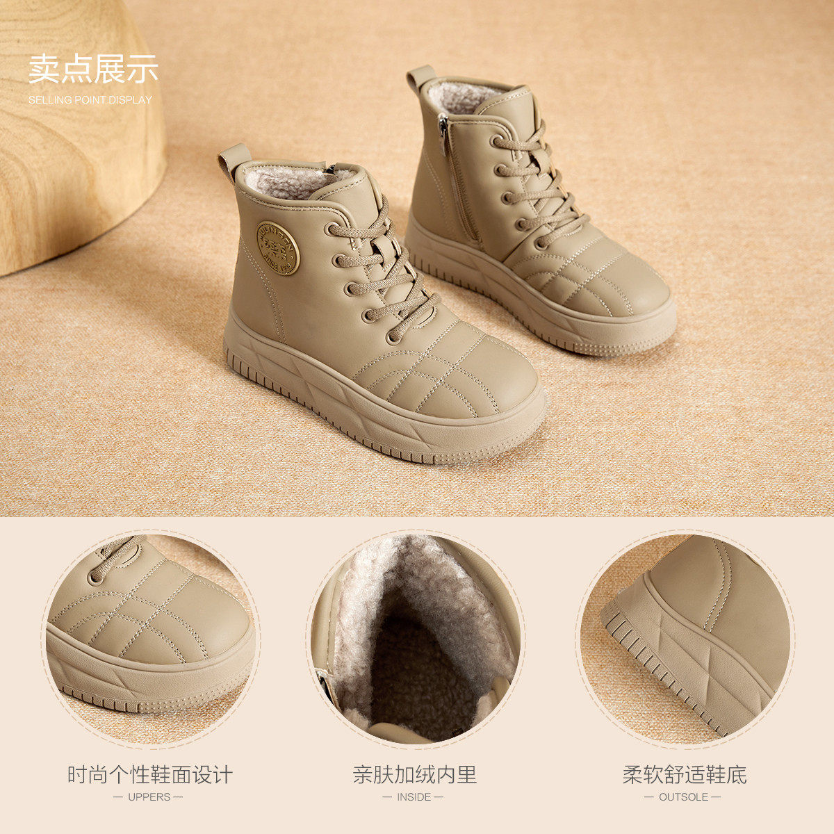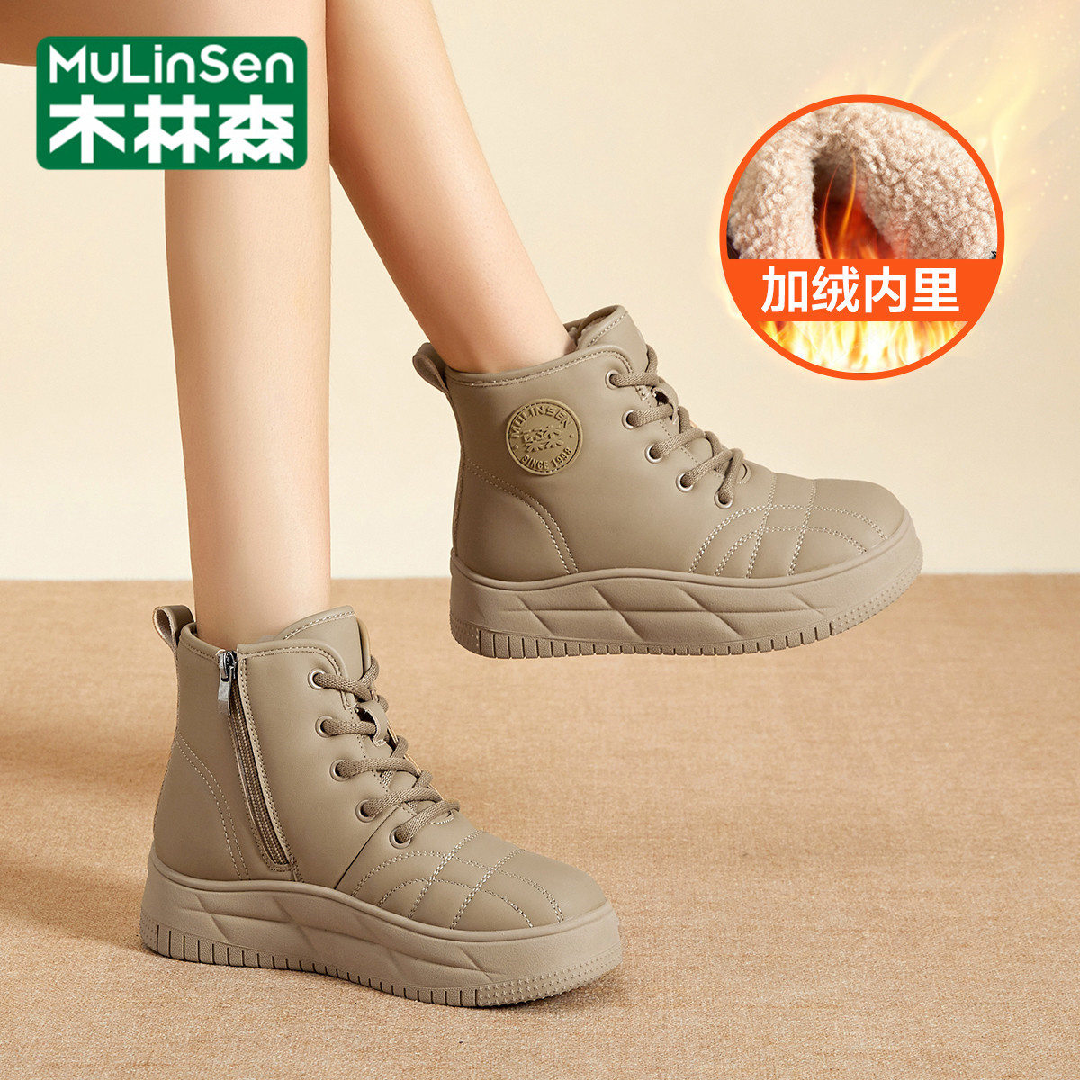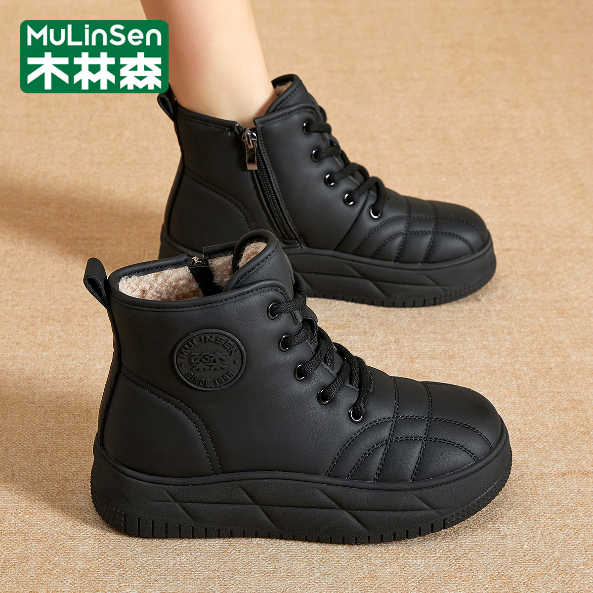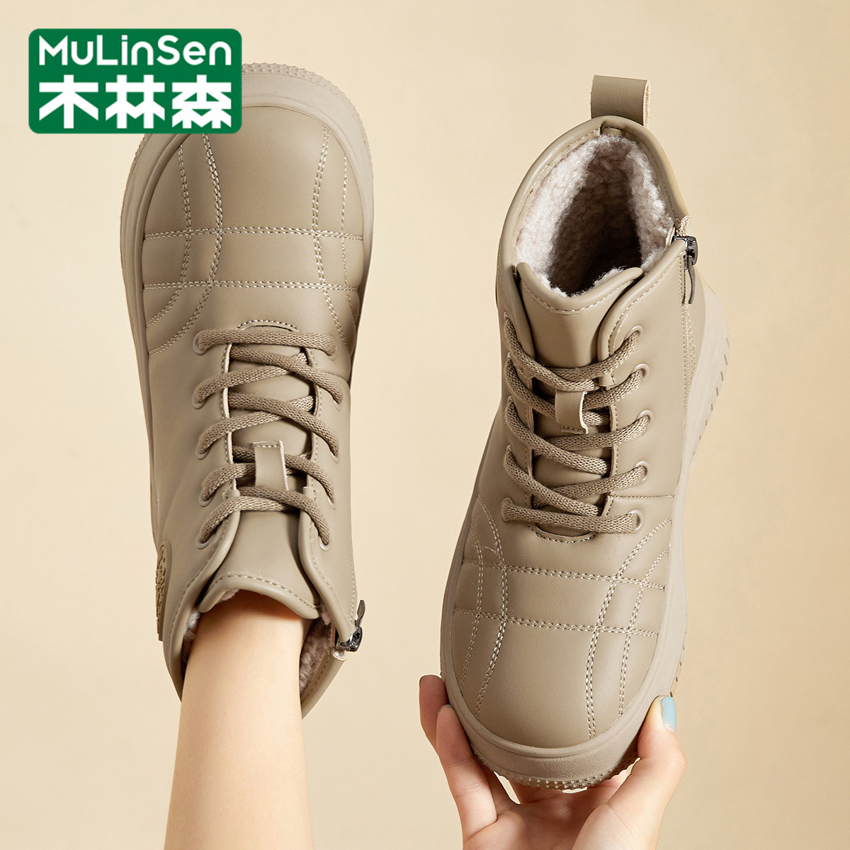 木林森雪地靴女冬季加绒加厚保暖大棉鞋皮毛一体厚底增高高帮棉鞋