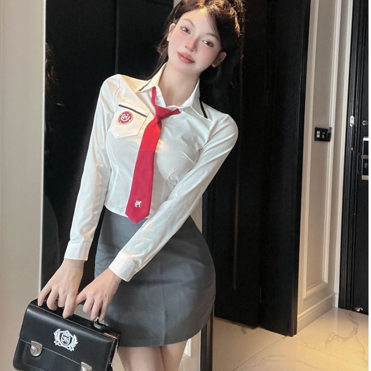 养生足道洗浴技师工作制服女修身职业装通勤长袖白衬衫包臀裙套装