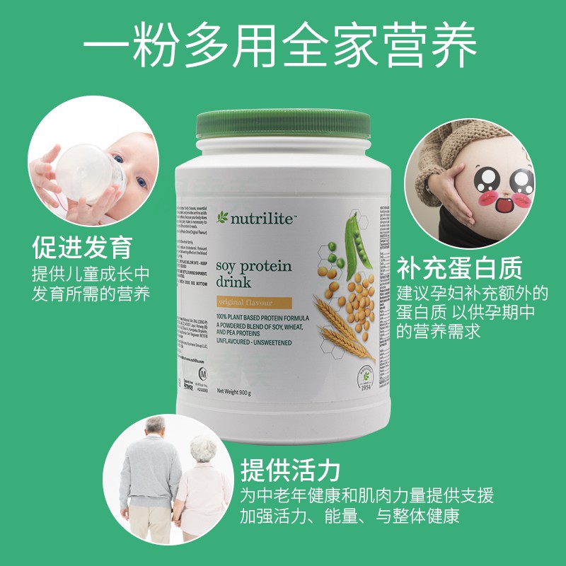 安利蛋白质纽崔莱多种植物蛋白粉家庭装900g大桶中老年成人马来版
