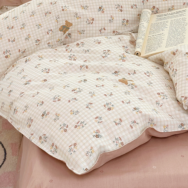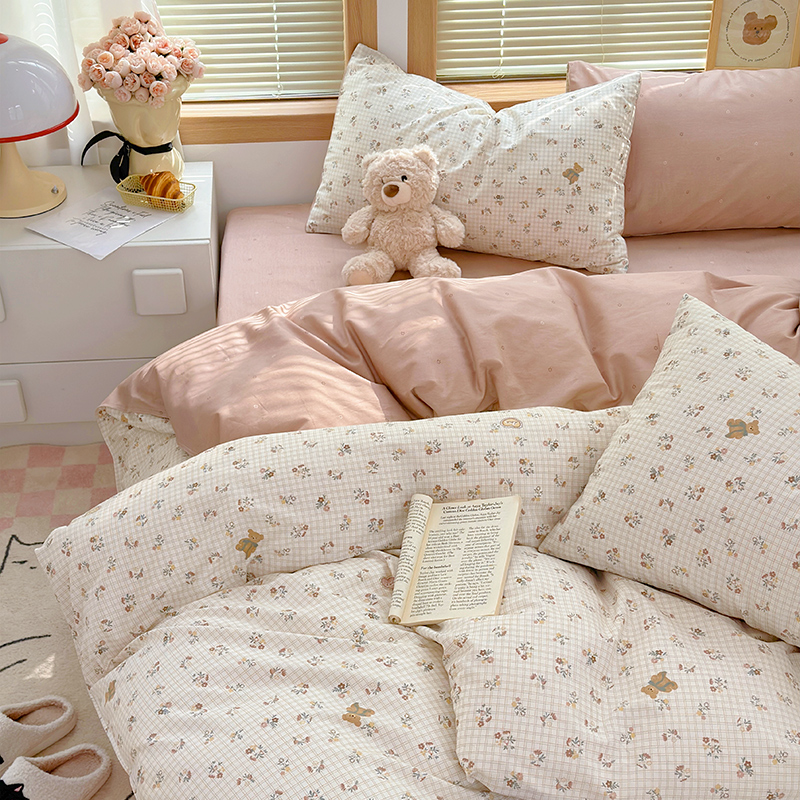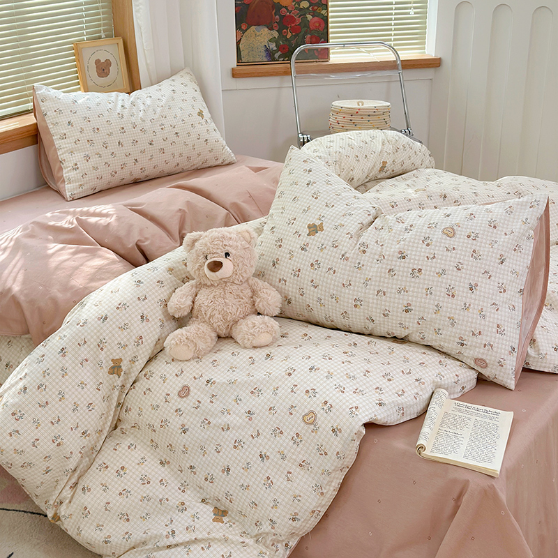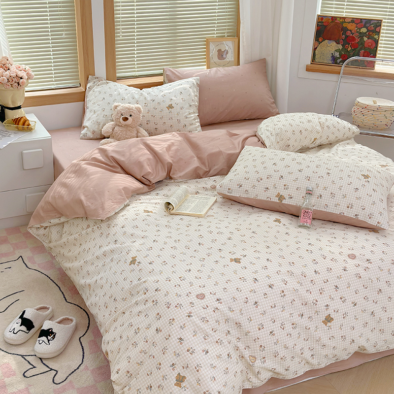 小熊时光丨碎花小清新纯棉被套四件套床上用品宿舍床单被罩定做