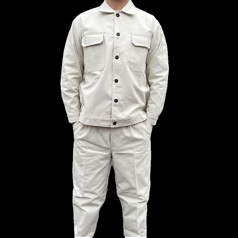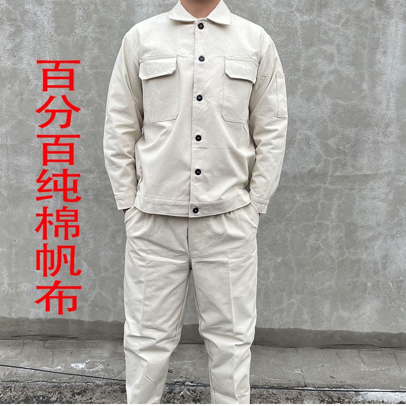 纯棉帆布厚款工作服套装男电焊工服耐烫耐磨炉前工阻燃劳保服白色