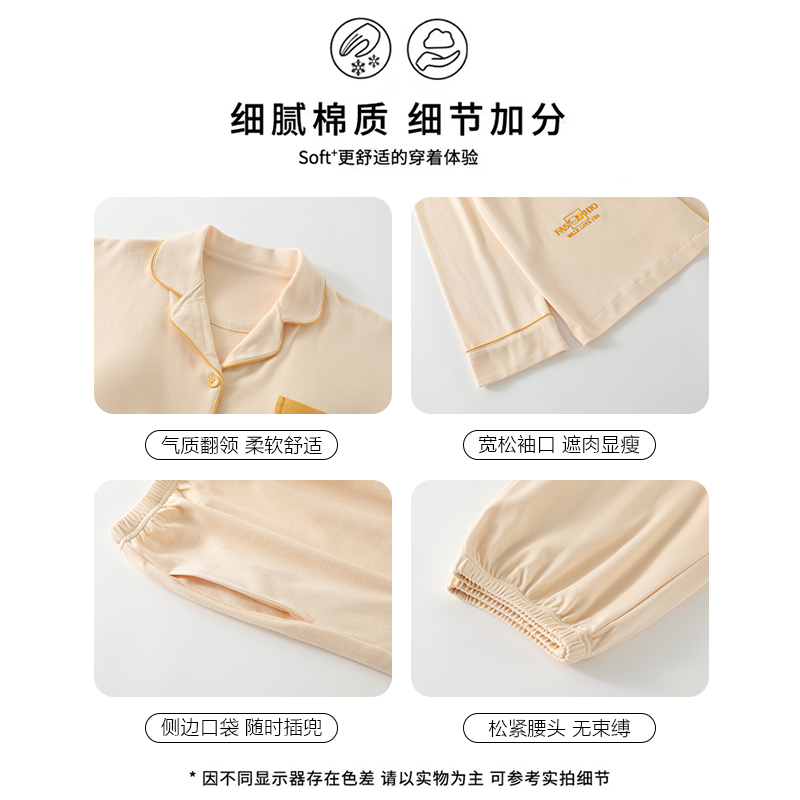 浪莎纯棉带胸垫睡衣女士春秋季长袖长裤可外穿休闲宽松家居服套装
