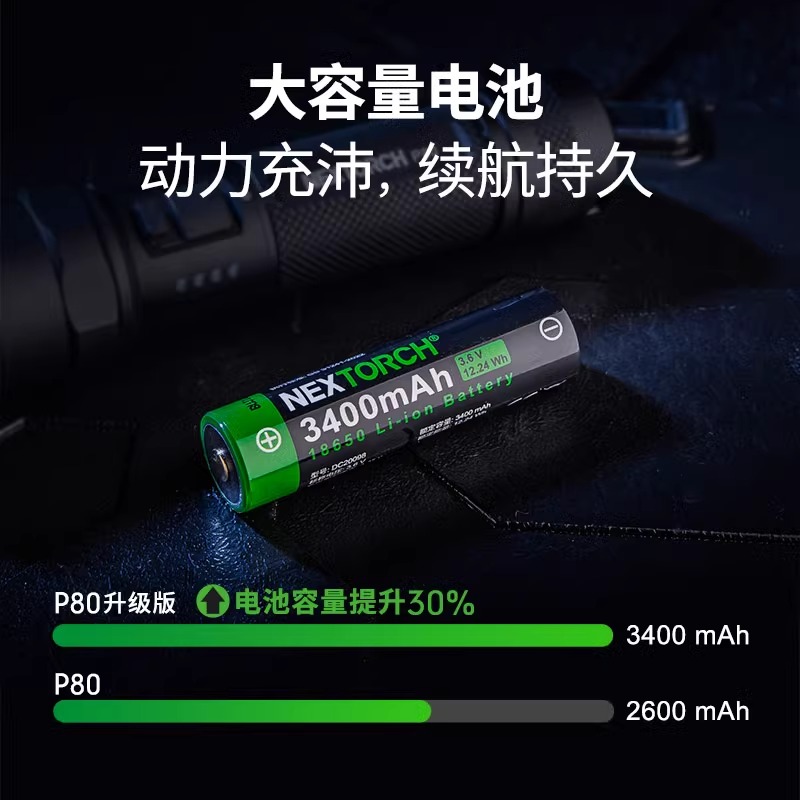 纳丽德新款P80/P81手电筒户外强光远射充电防身战术手电巡逻超亮