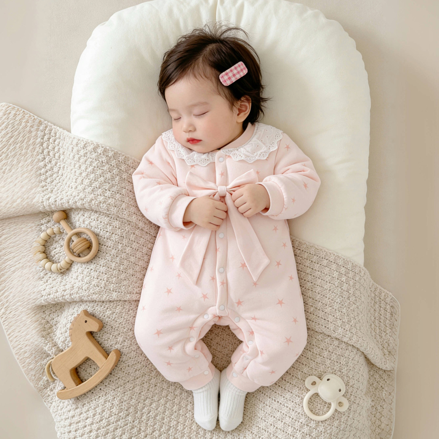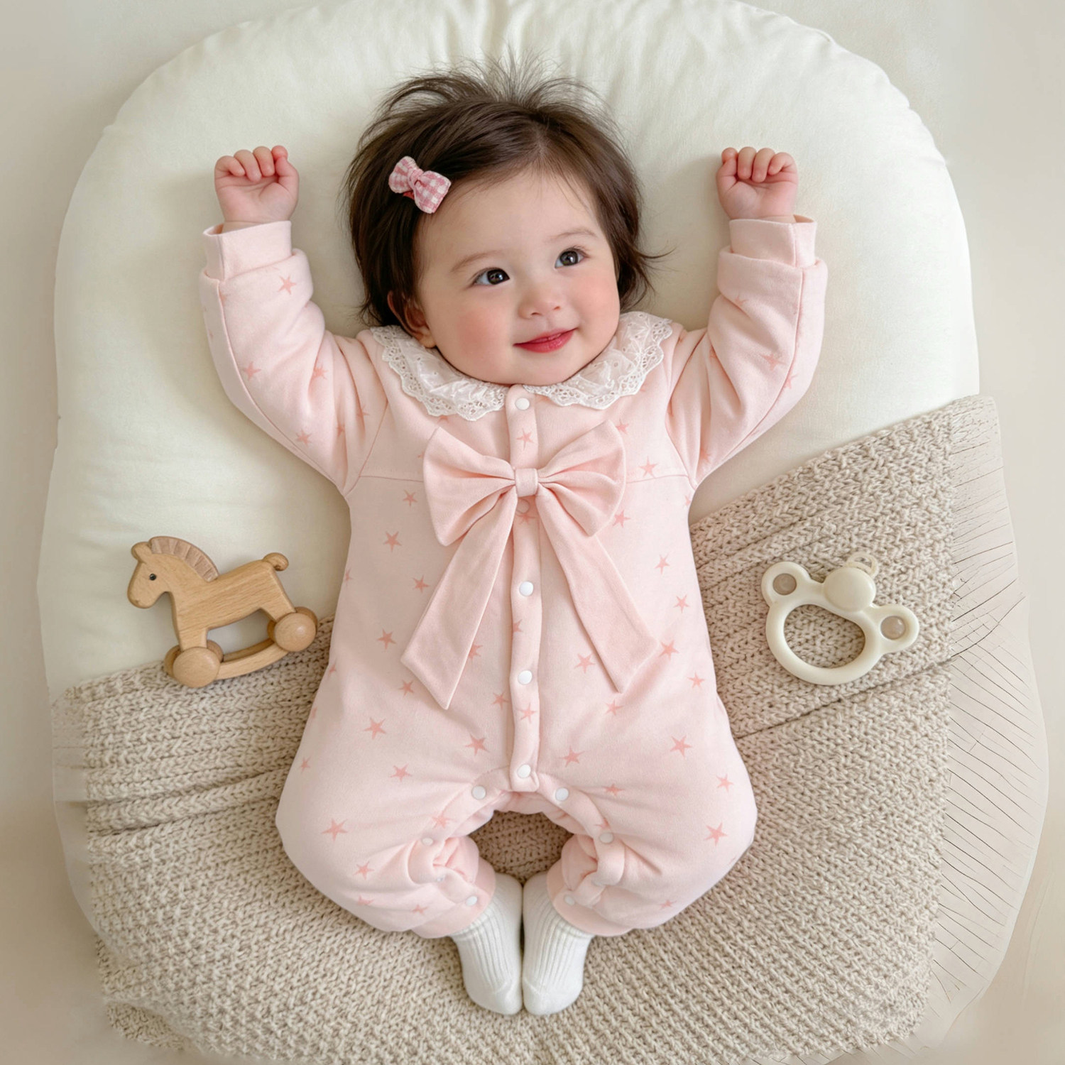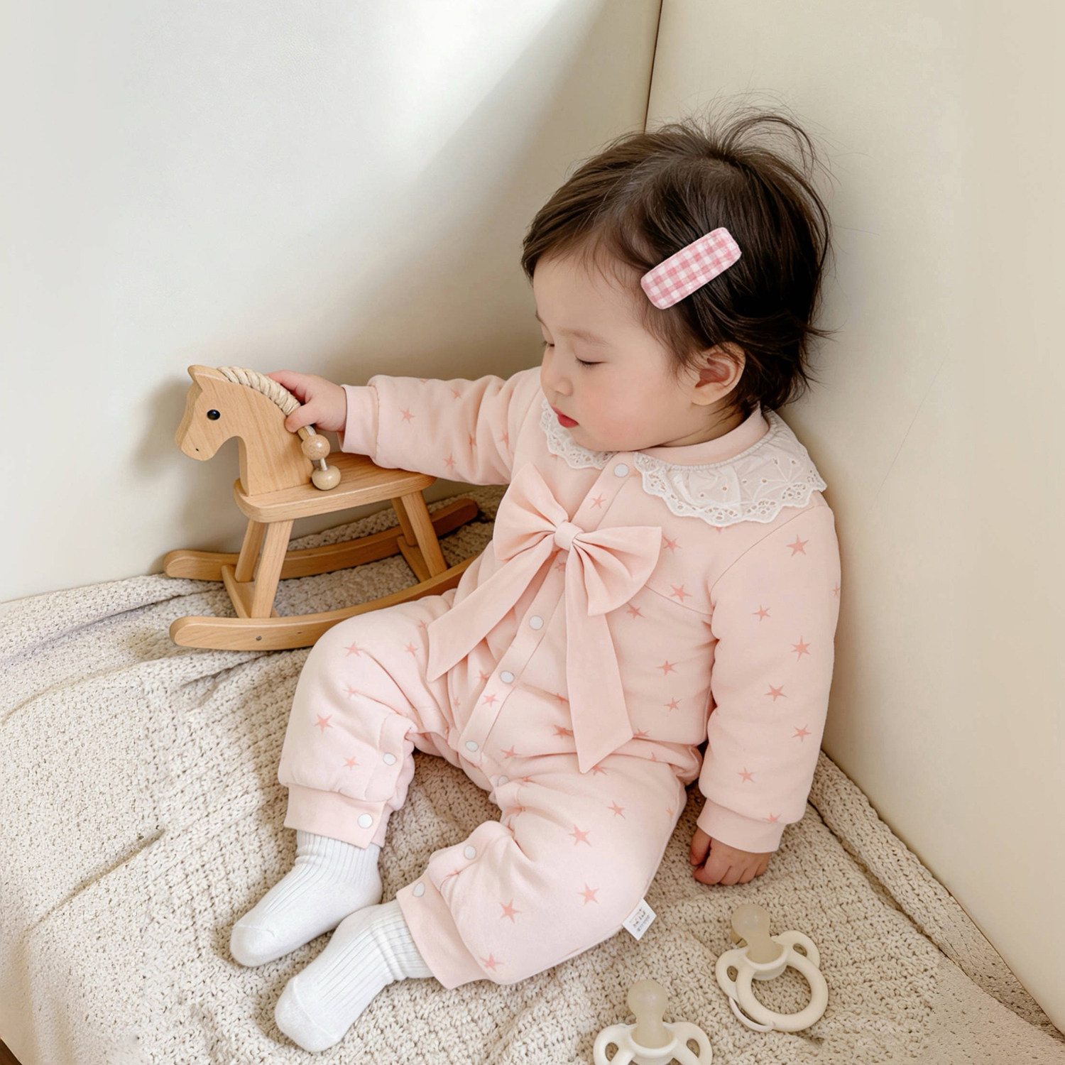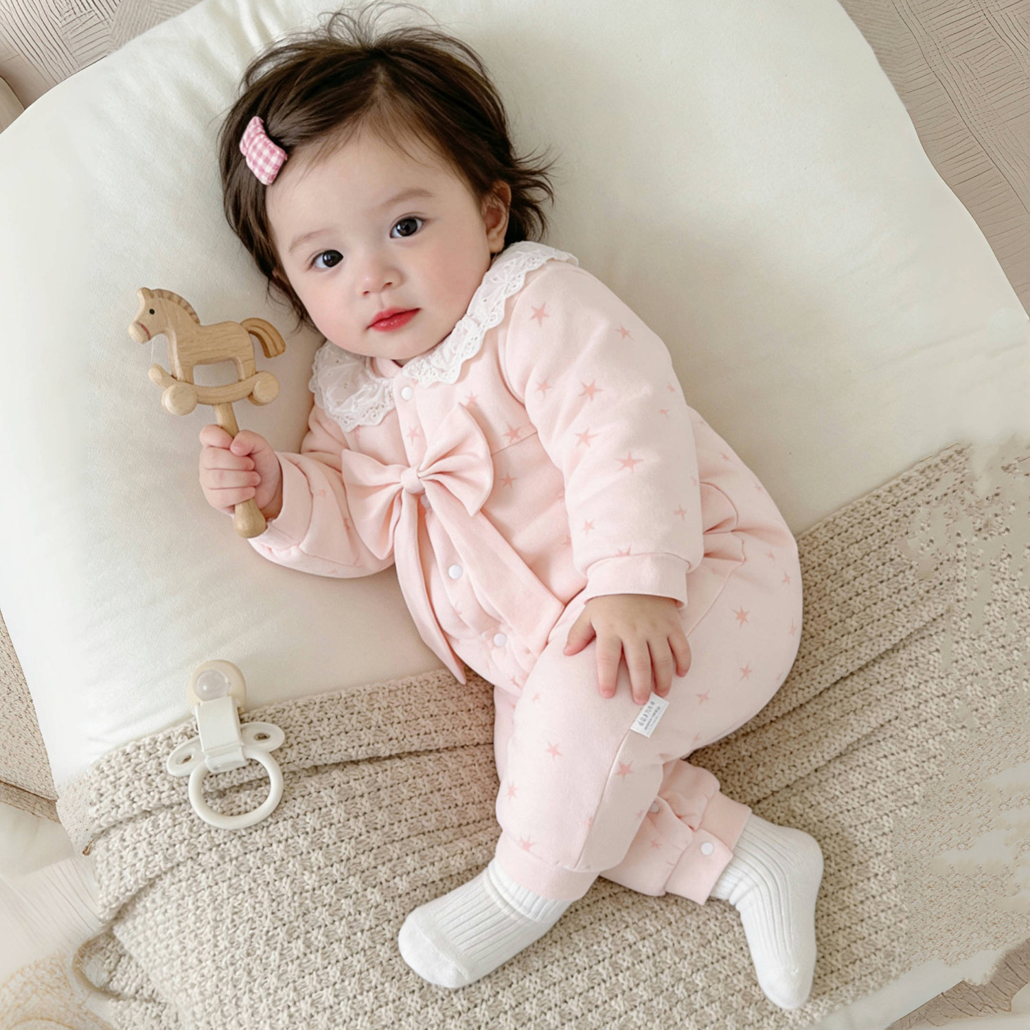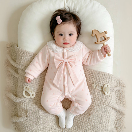 婴儿夹棉连体衣冬季女宝宝公主纯棉哈衣爬服加厚棉衣服春装外出服
