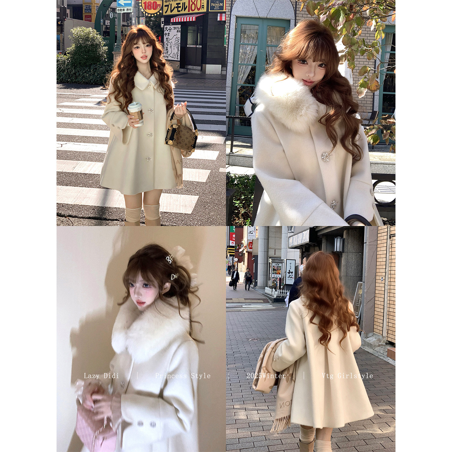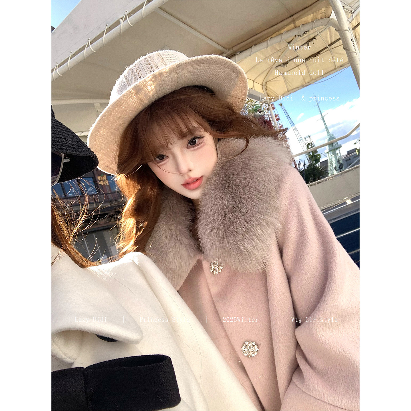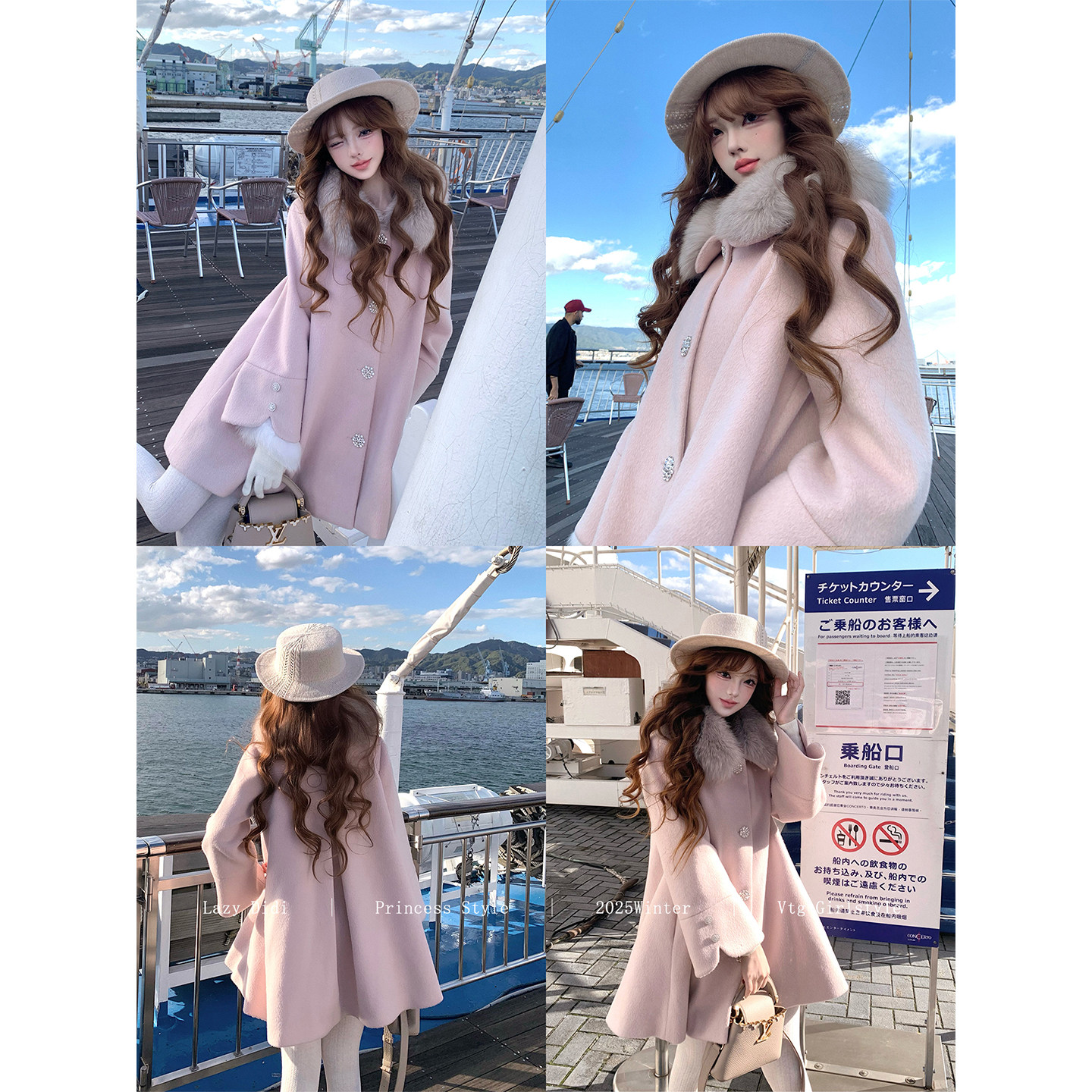 Lazy Didi初雪漫步 日系千金3M斗篷羊毛大衣气质中长款千金呢外套