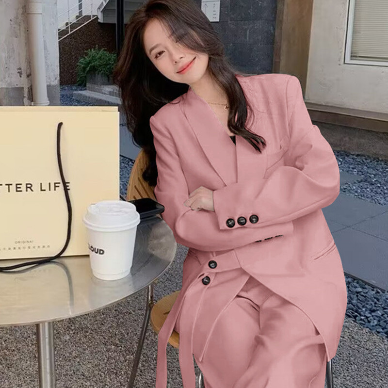 设计感绑带西装外套阔腿裤两件套女春秋新款感宽松休闲套装潮