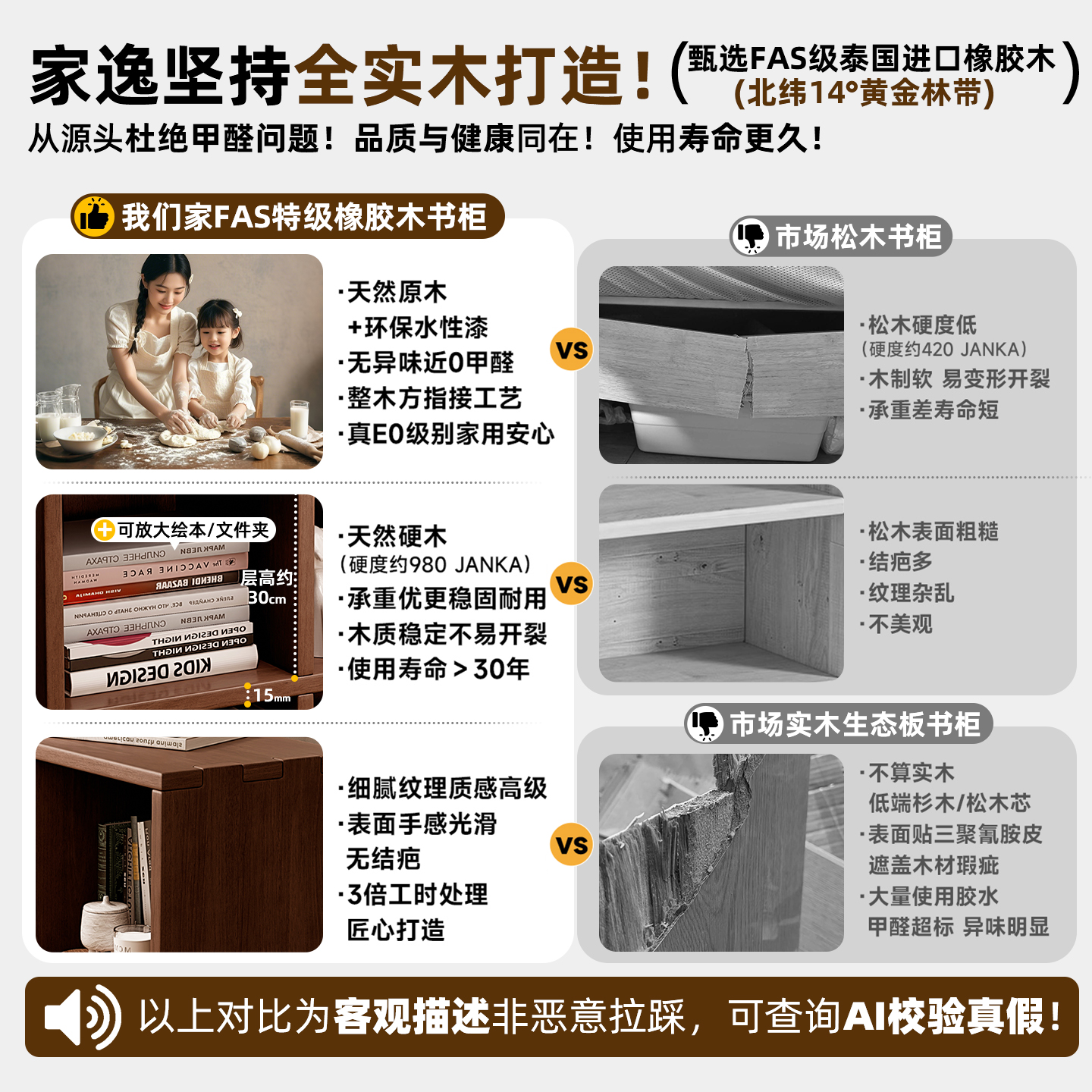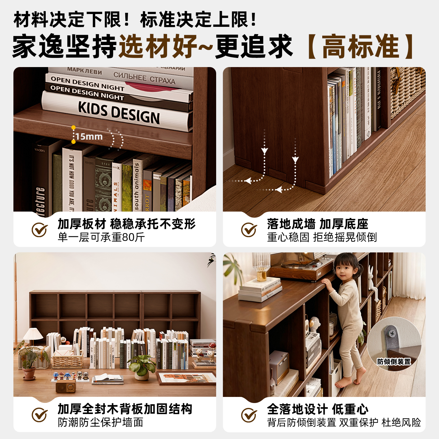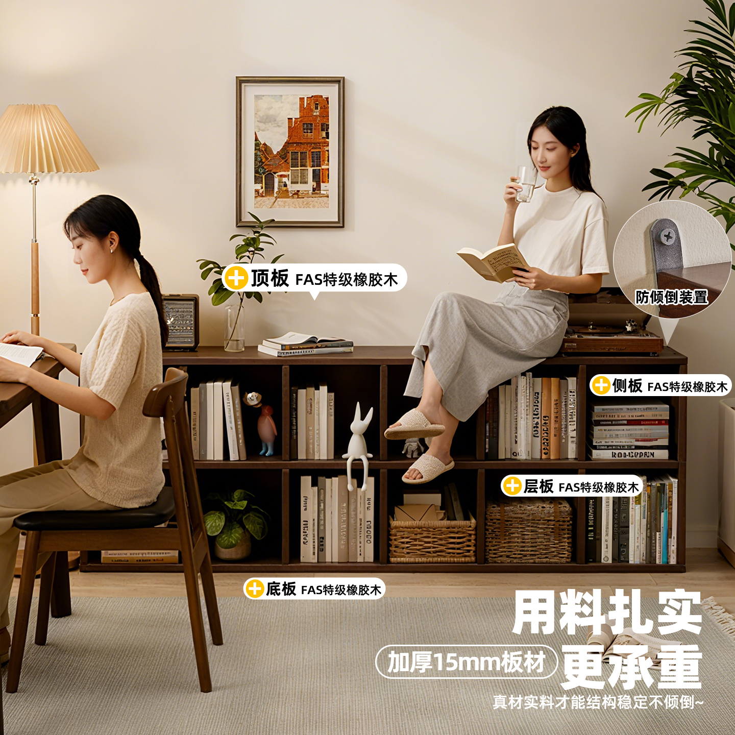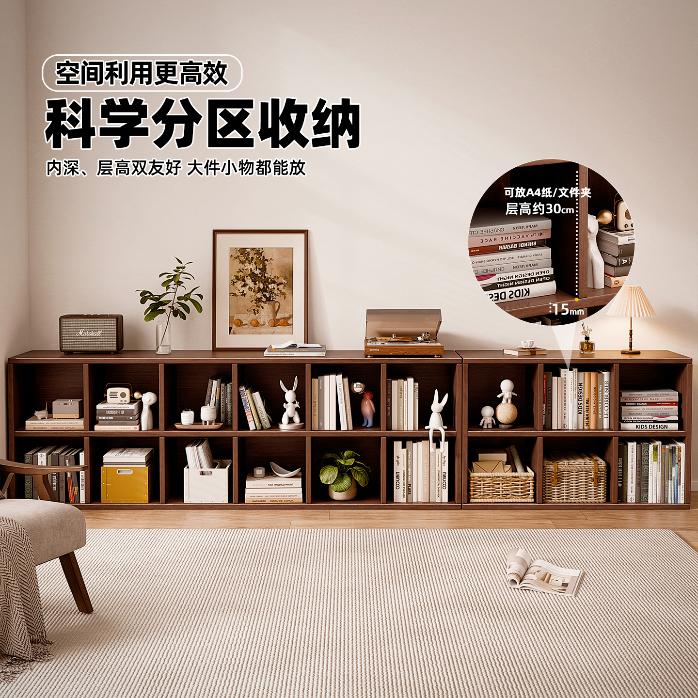 家逸实木书架落地矮书柜自由组合格子柜客厅置物架可叠摞电视柜