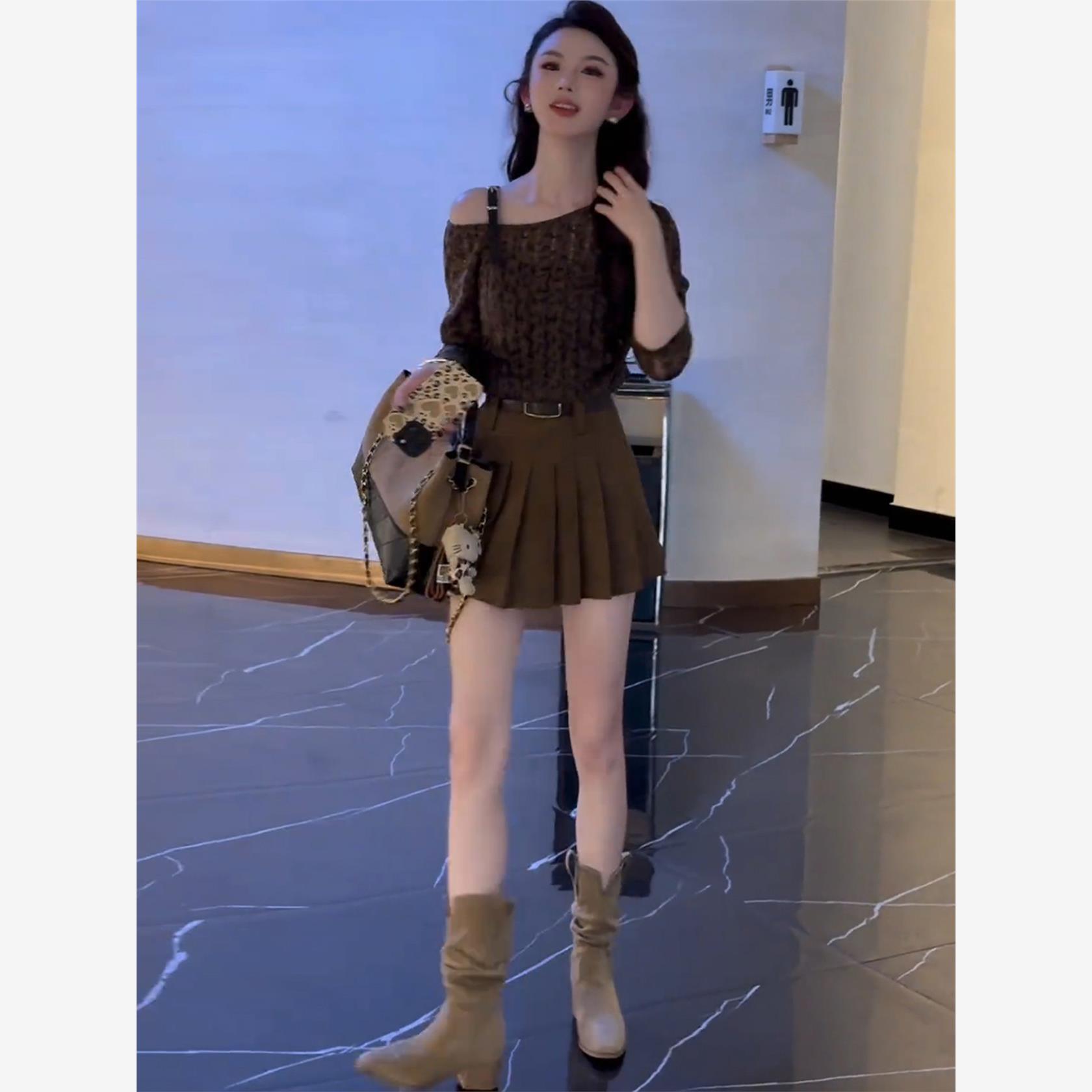 2025超火穿搭一整套女秋季新款设计感洋气减龄上衣百褶短裙套装