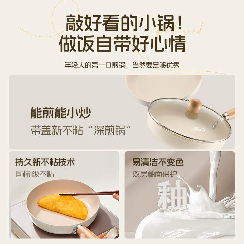 爱仕达陶瓷煎锅平底锅一人食不粘锅家用燃气灶电磁炉通用煎炒锅