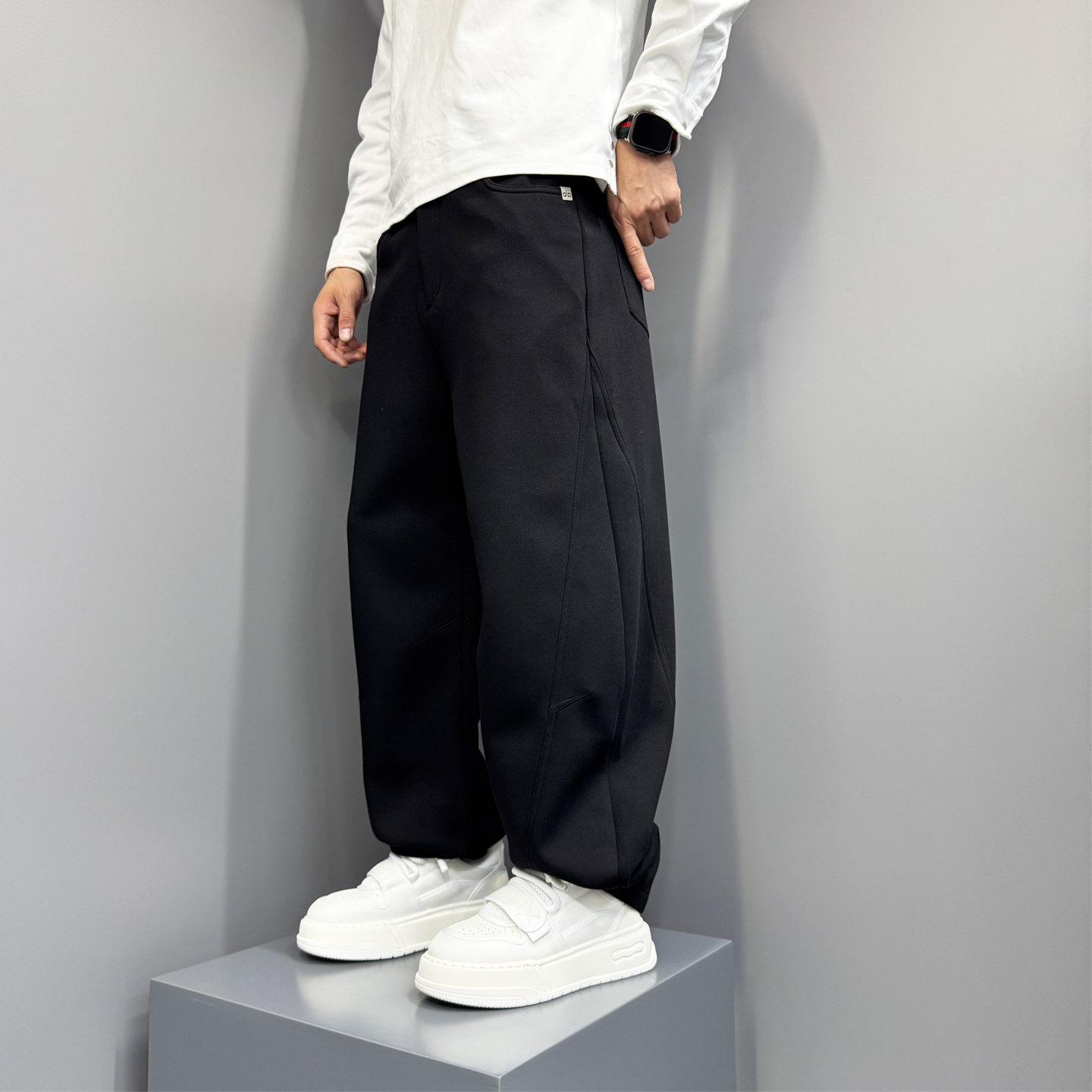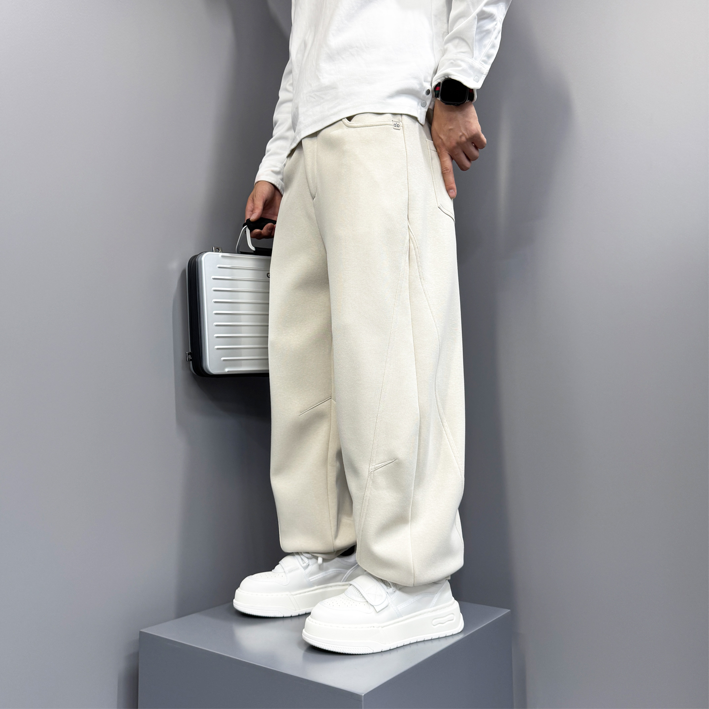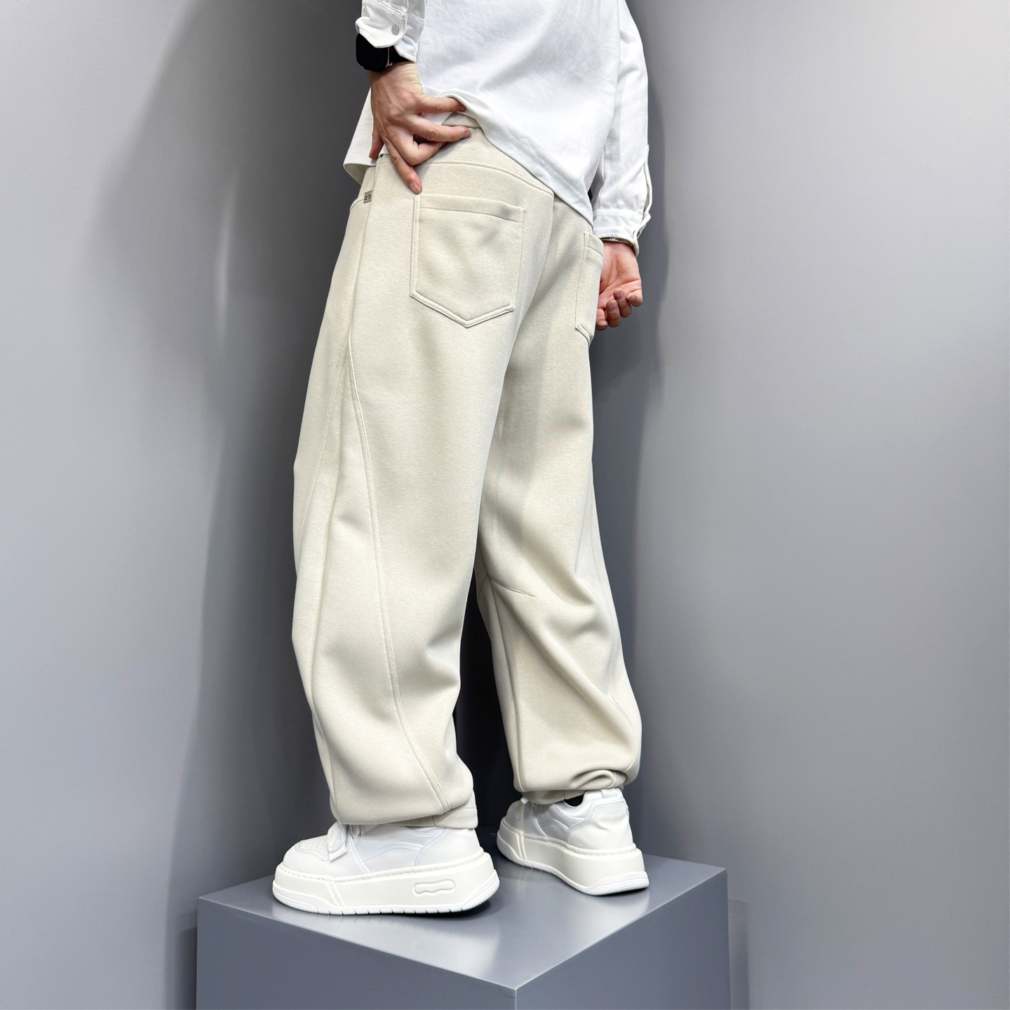 2025秋冬新款重磅加厚弯刀休闲裤男士宽松直筒拼接阔腿运动长裤子