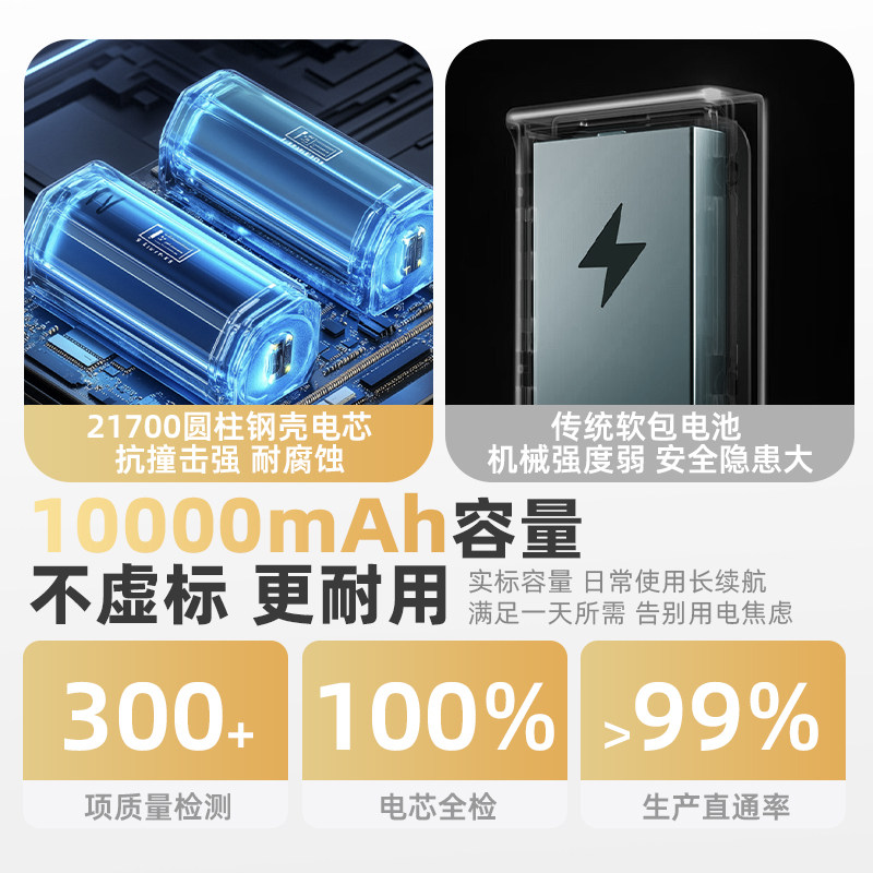 【交个朋友好物不打烊】tudoo安心豆充电宝新国标3C认证10000毫安大容量45W闪充可上飞机高铁多合一移动电源
