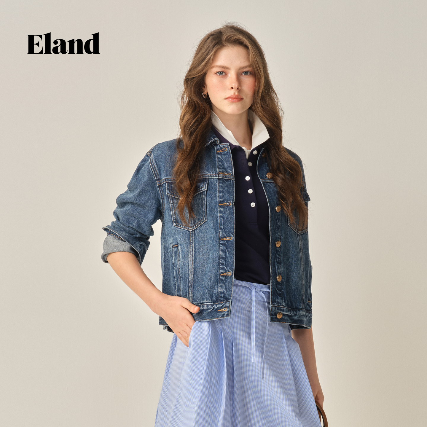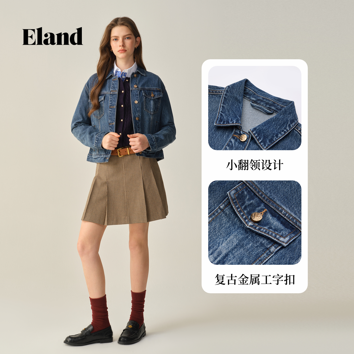 Eland衣恋短外套长袖通勤小翻领牛仔女装2025冬季新款