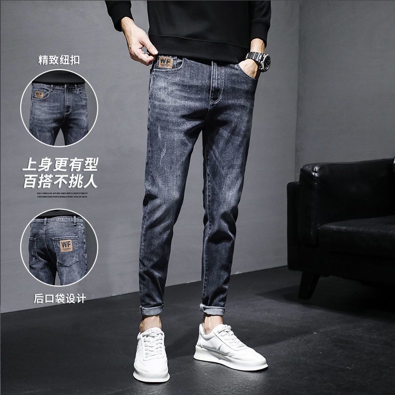 春秋男款加绒牛仔裤宽松弹力哈伦直筒裤冬季加厚耐磨耐脏干活裤子